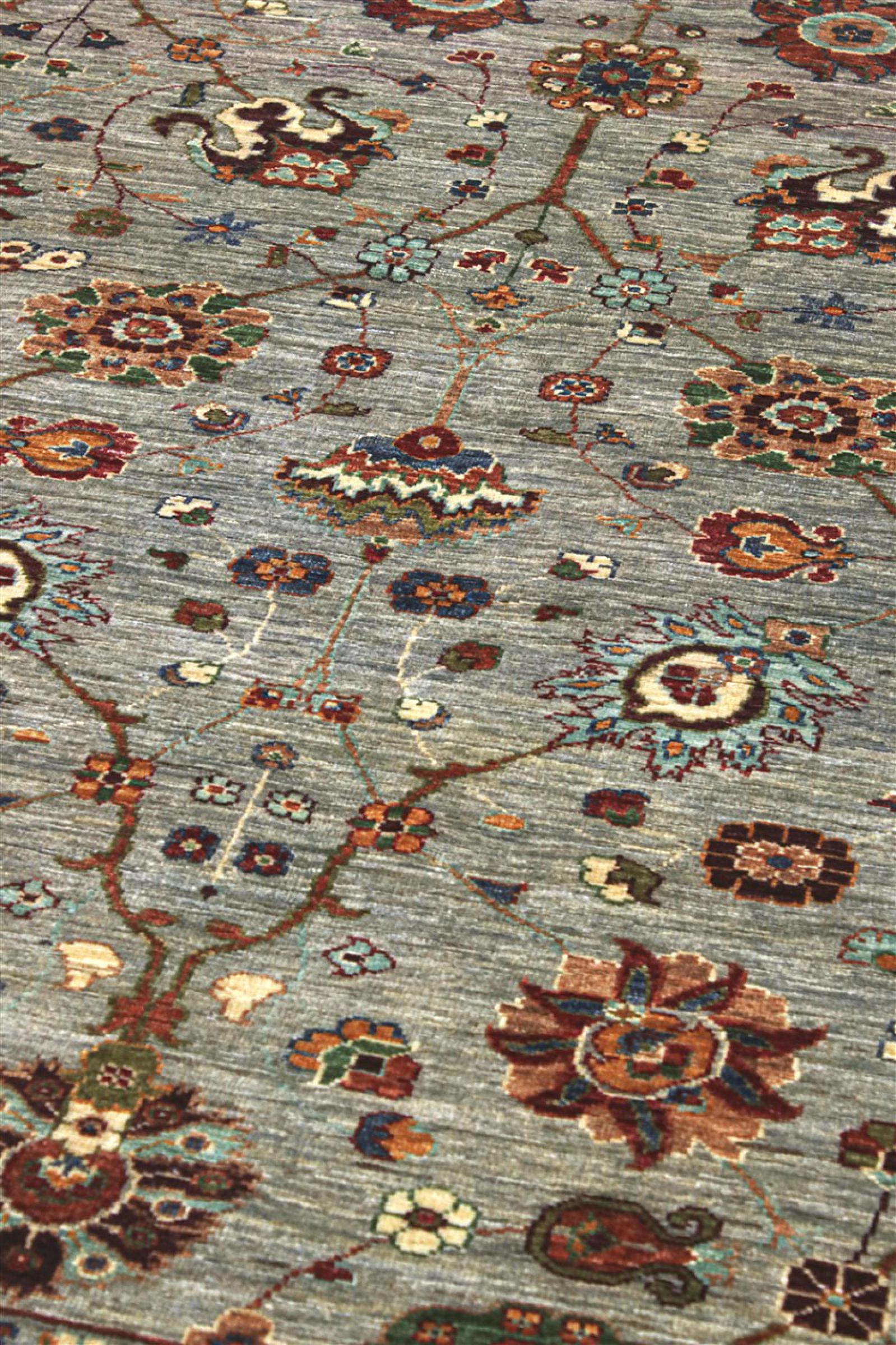 このカーペットは、最高品質の手紡ぎ羊毛を使用しています。特にイラン(旧ペルシャ)、アフガニスタン、パキスタンでは、実際にカーペットの結び目が始まる前に、今でも手で羊毛を紡いでいます。ウールは何世紀にもわたって、自然で非常に丈夫な素材であることを証明してきました。中でも、防汚性、保温性があります。同時に、ウールは他の素材とは比べ物にならないほど柔らかく、自然な光沢があります。