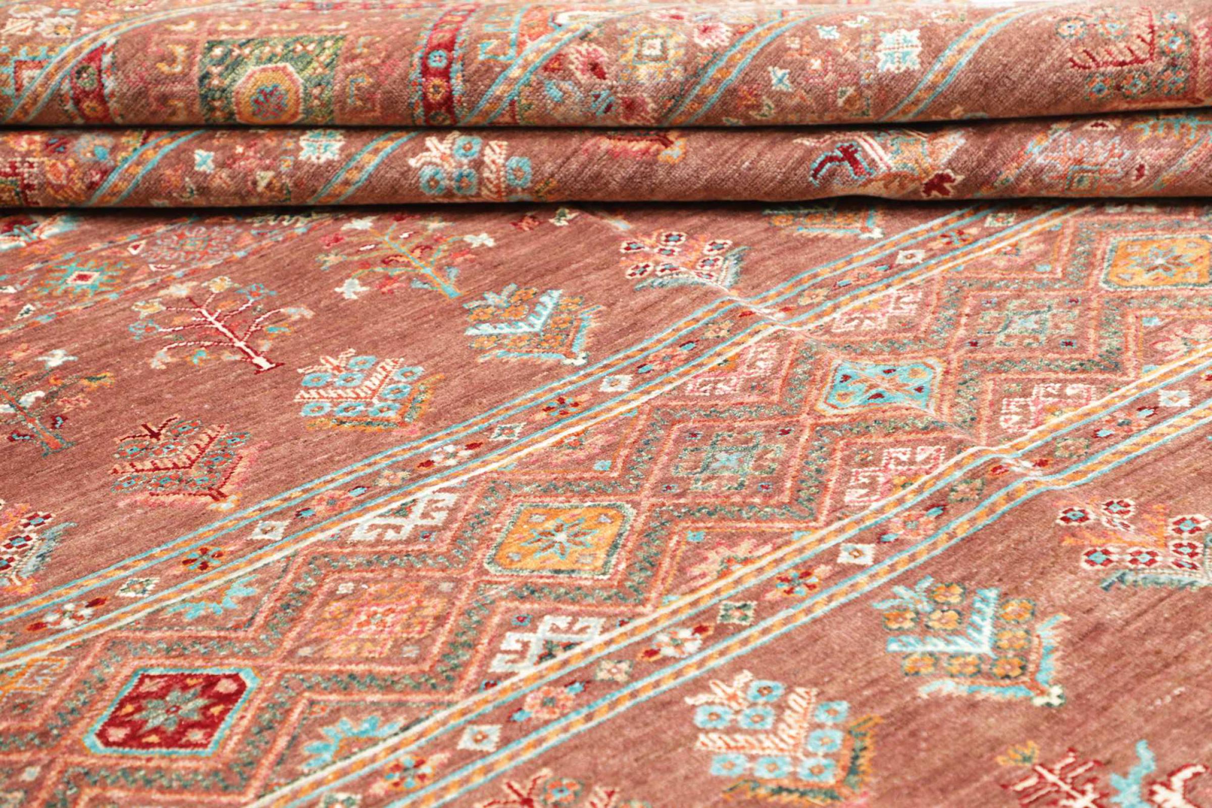 このカーペットは、最高品質の手紡ぎ羊毛を使用しています。特にイラン(旧ペルシャ)、アフガニスタン、パキスタンでは、実際にカーペットの結び目が始まる前に、今でも手で羊毛を紡いでいます。ウールは何世紀にもわたって、自然で非常に丈夫な素材であることを証明してきました。中でも、防汚性、保温性があります。同時に、ウールは他の素材とは比べ物にならないほど柔らかく、自然な光沢があります。