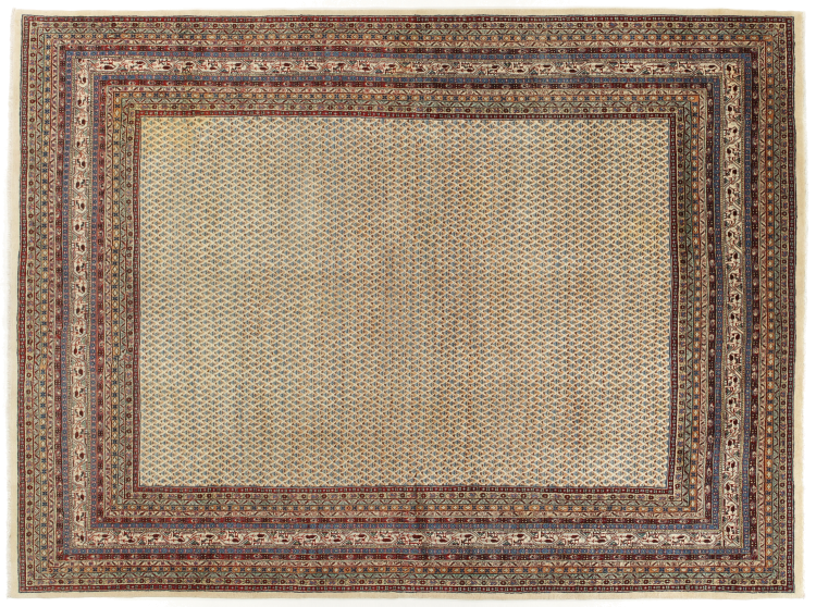 このサラフ ミール カーペットは、オールオーバー デザインとも呼ばれる非常に典型的なパターンを持っています。 明確で、意図的に湾曲した装飾を避けています。 つまり、ラグは部屋に鮮やかなポップな色を加えながら、部屋を落ち着かせることができます。