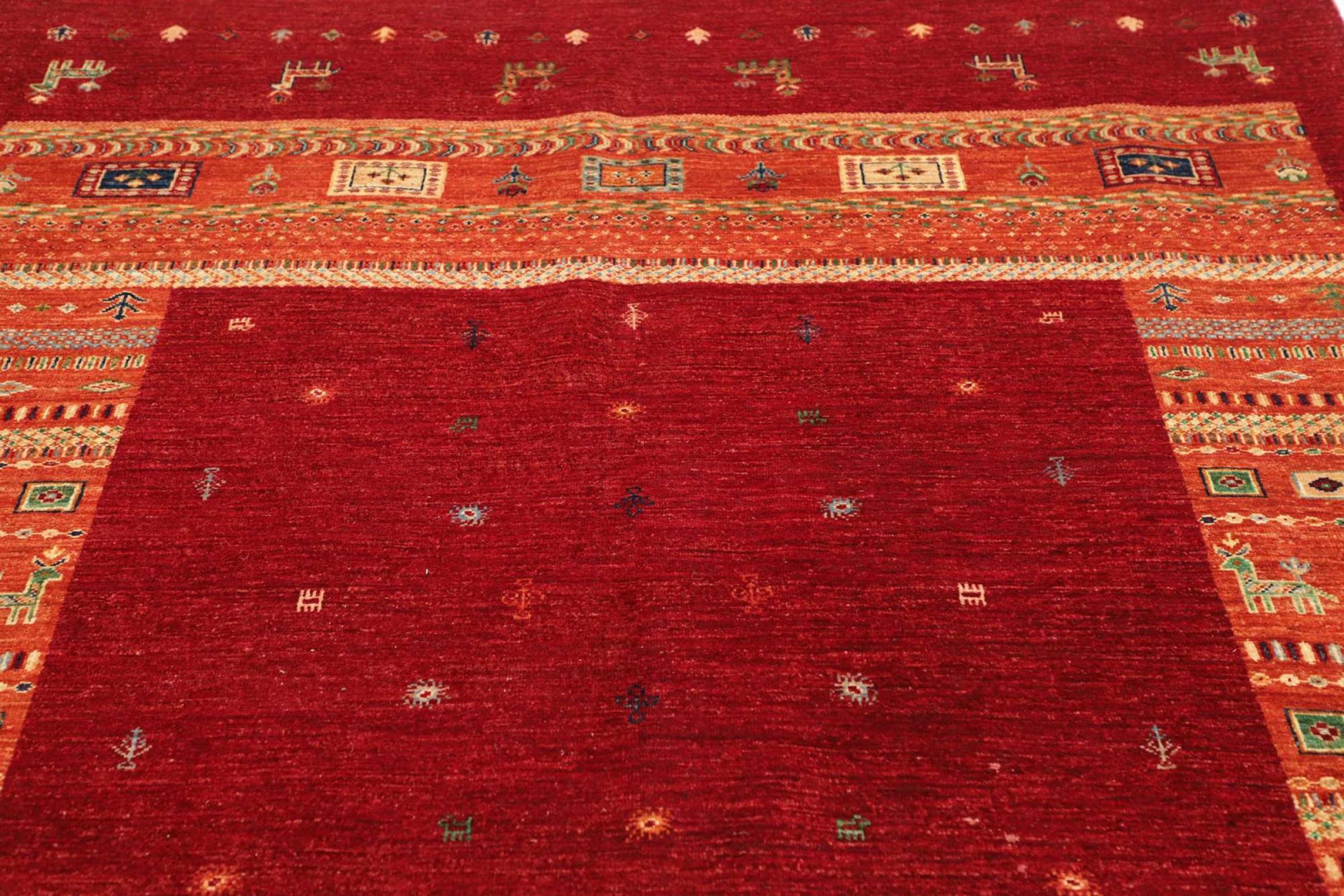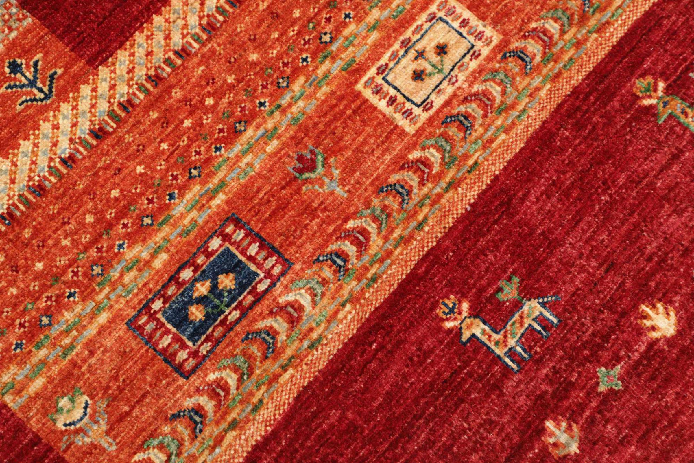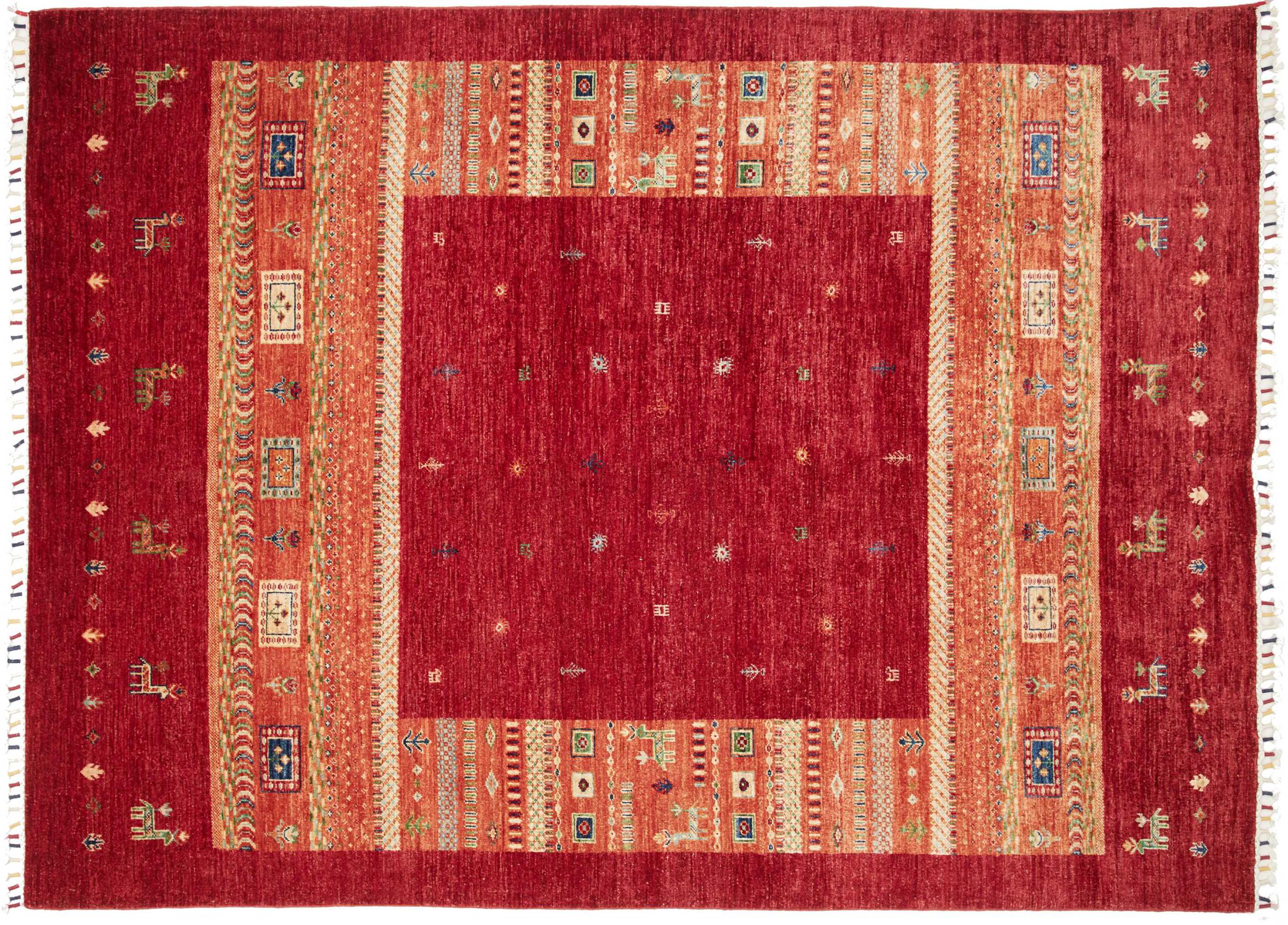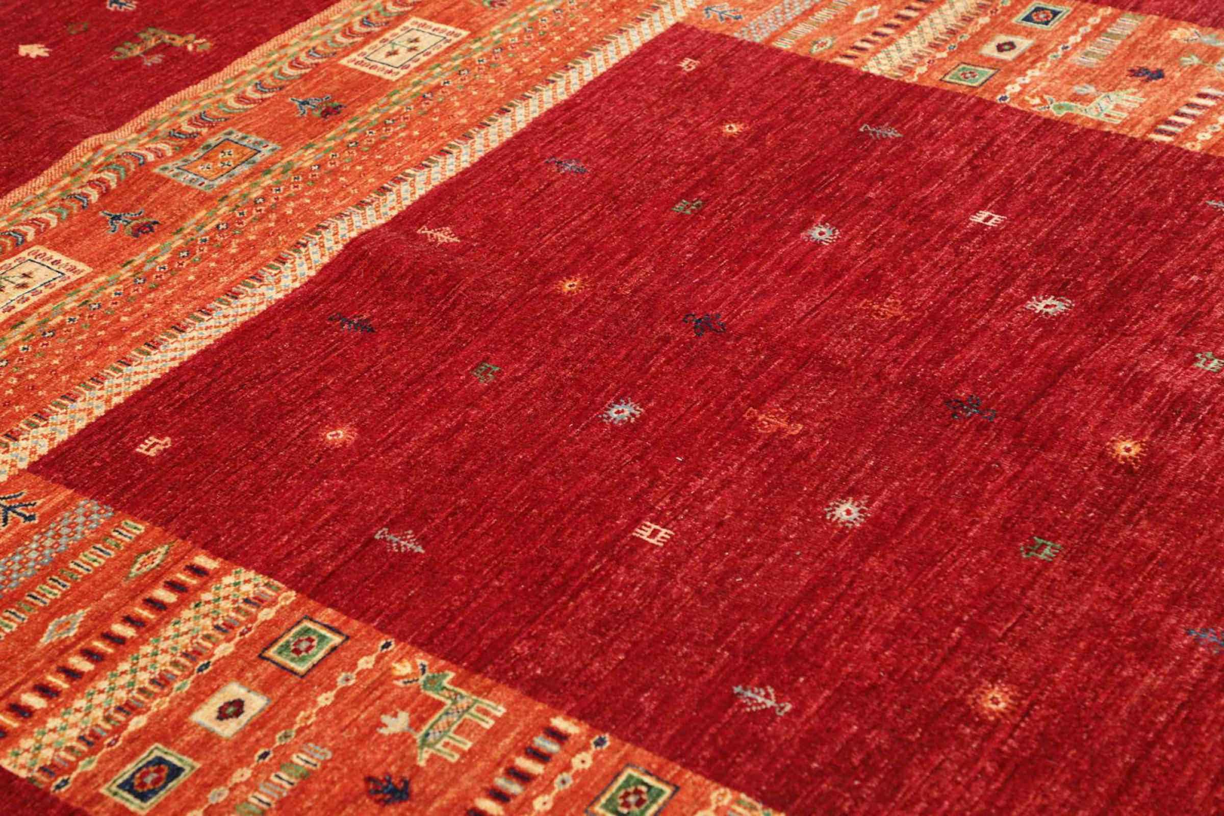 この鮮やかなオリエンタル ラグは、世界で最も広範な織物文化の 1 つであるパキスタンで手織りされました。東洋の明るい色のスペクトルがここで真価を発揮します。このようなカーペットは、季節ごとに生活に喜びをもたらします。デザイナー カーペットは、数か月にわたって 1 回だけ手で編まれているため、非常に独自の個性を持っています。