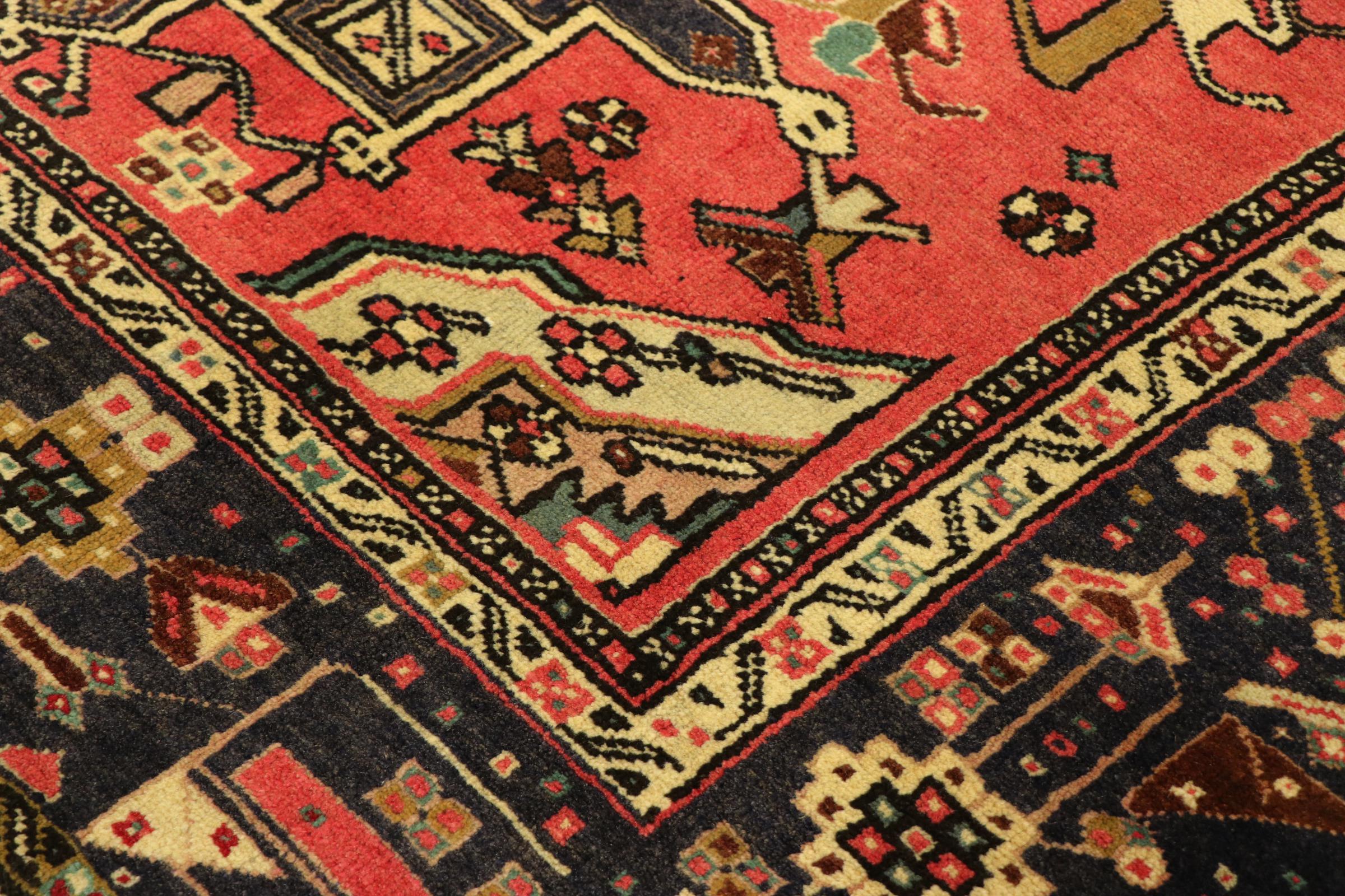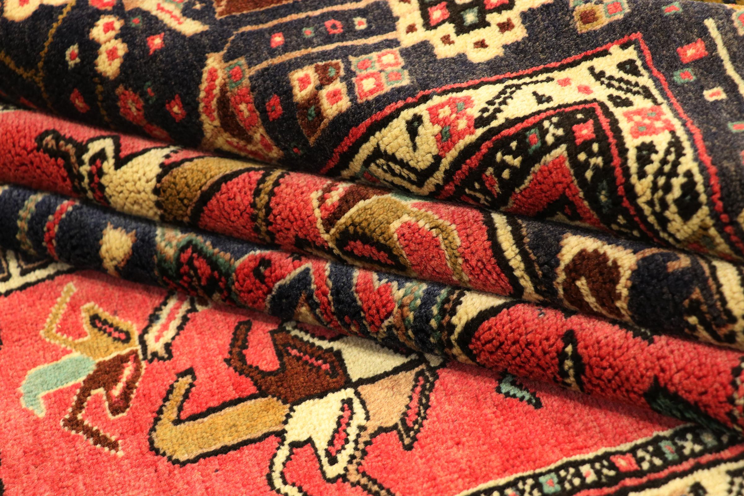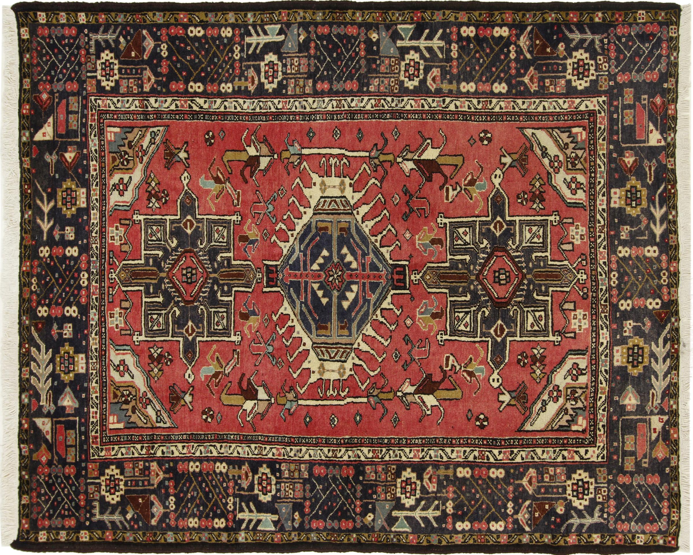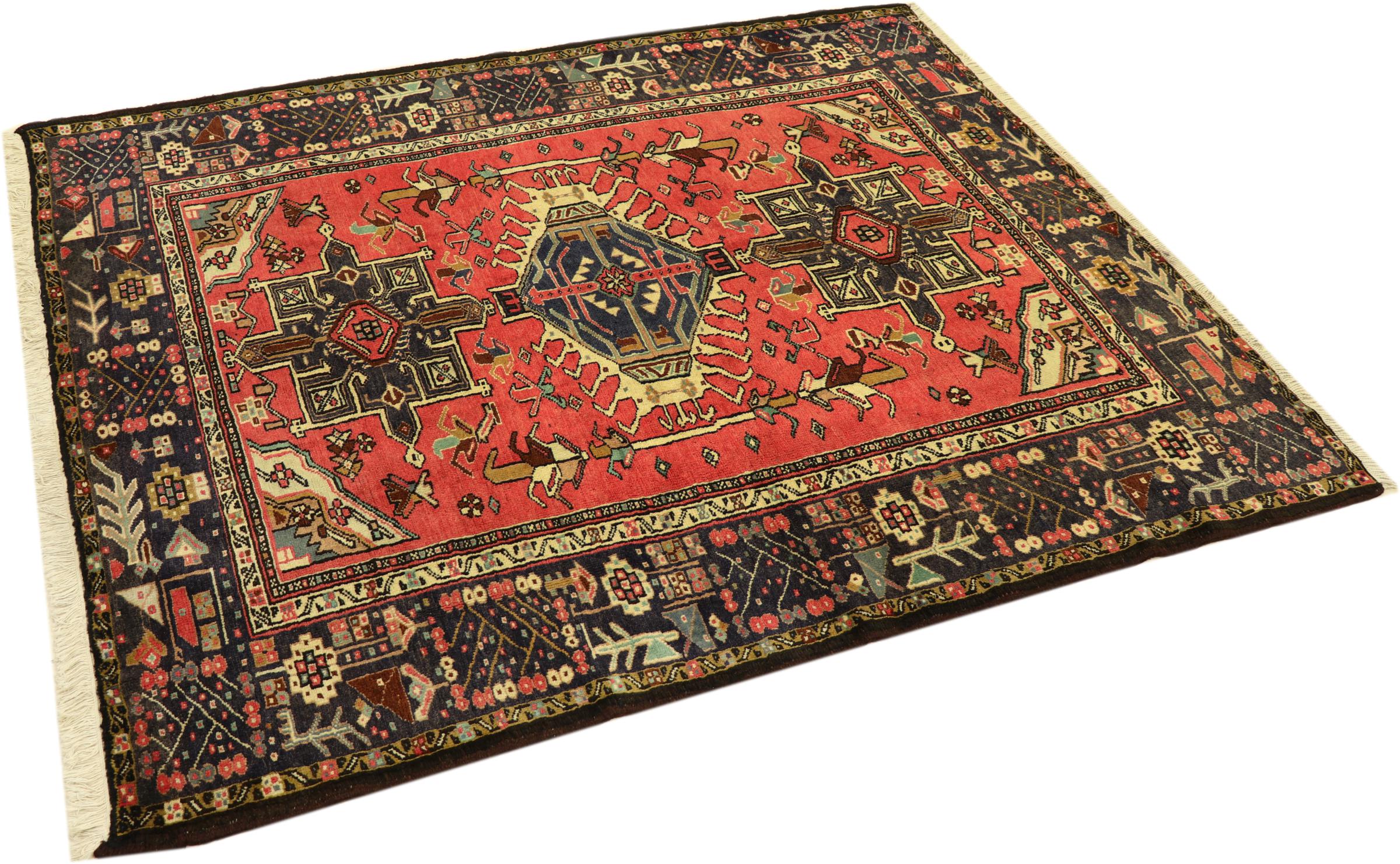 青と赤が特徴的なヘリズ地方のガラージェ・ペルシャ絨毯。これは何百年も前にペルシャ帝国で織られたもので、正真正銘の村の絨毯です。