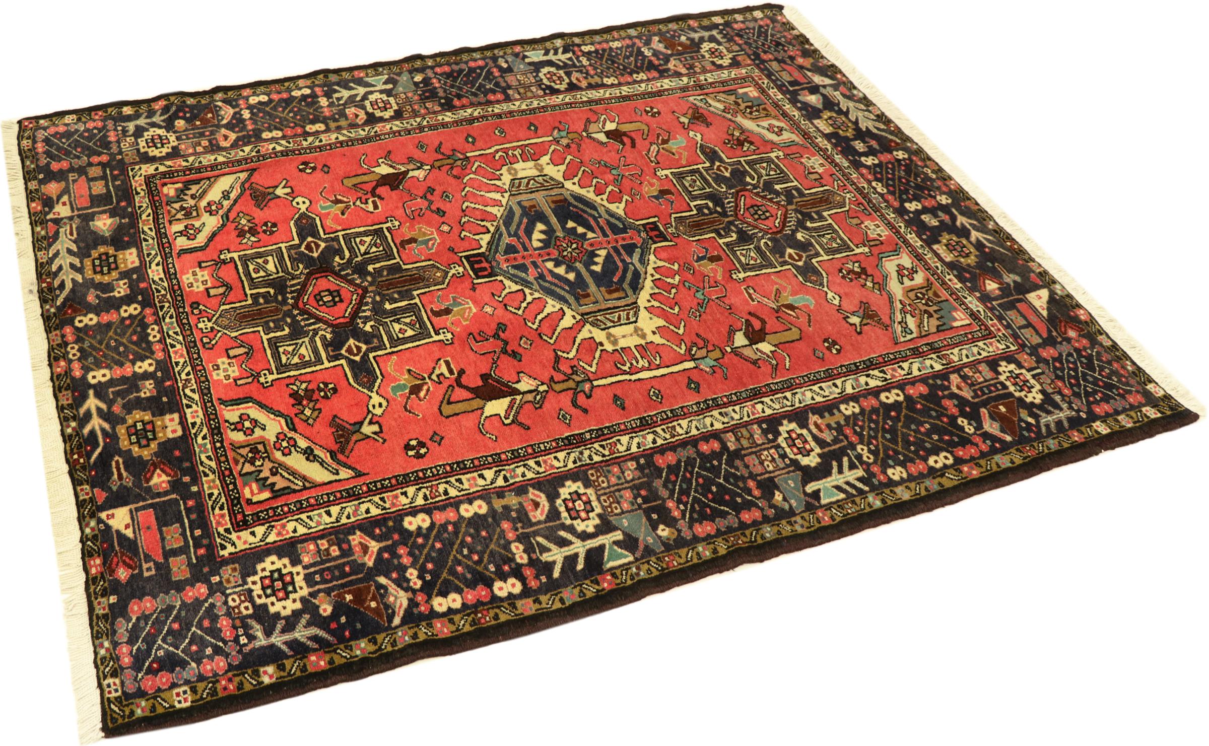 イラン(旧ペルシャ)の村や遊牧民の絨毯に属する絨毯です。この種の絨毯は、昔からの伝統で、小さな町や村で手で結ばれています。遊牧民でさえ、今でもペルシャ絨毯を野外で結びます。絨毯は柄がなく、頭から完全に結びます。古典的な装飾品が特徴で、直線的で幾何学的なパターンで配置されています。 文化的に伝統的な起源を持つこのカーペットは、古代ペルシャを体現するユニークな個性を持っています。
