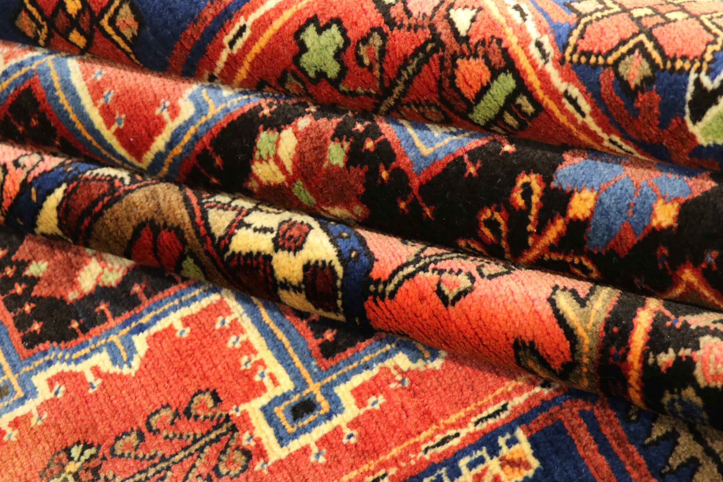 青と赤が特徴的なヘリズ地方のガラージェ・ペルシャ絨毯。これは何百年も前にペルシャ帝国で織られたもので、正真正銘の村の絨毯です。