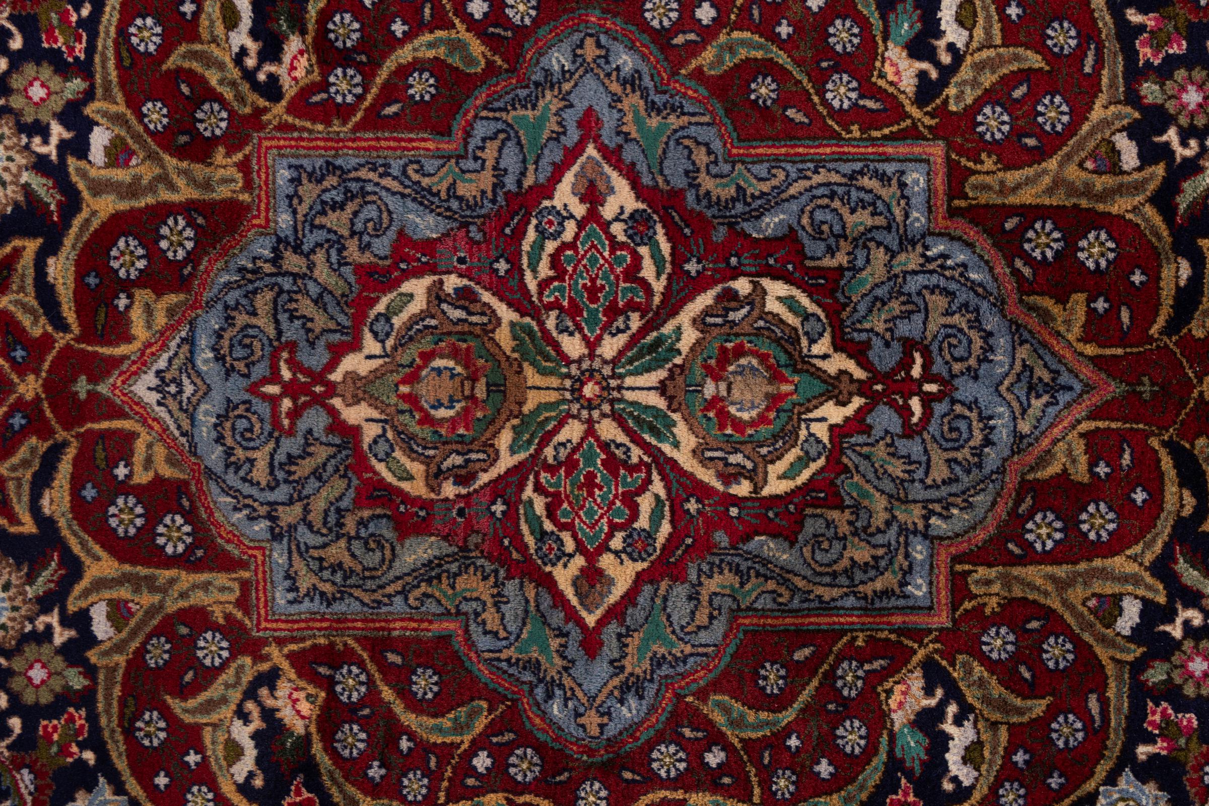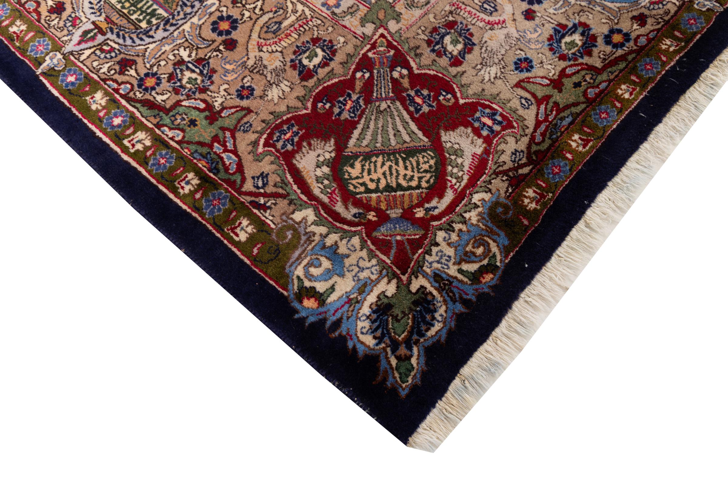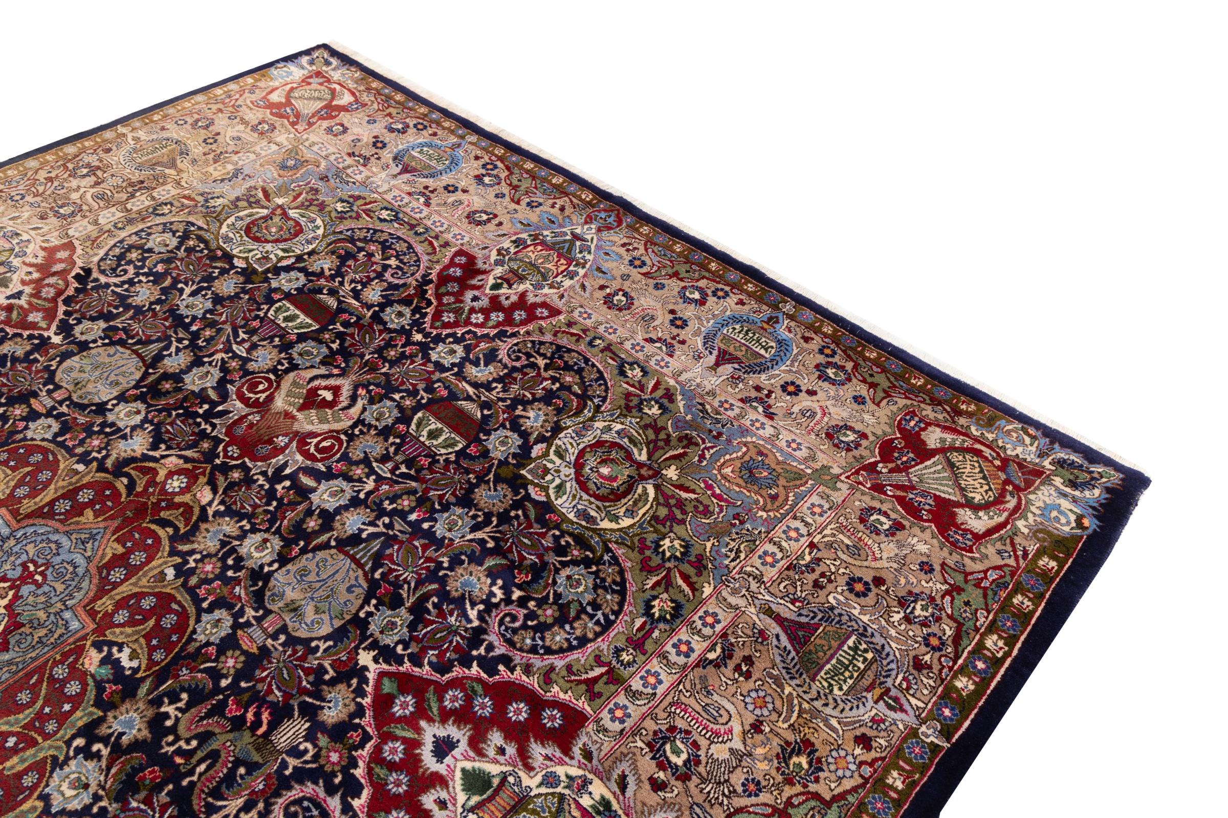 この絨毯はイラン(旧ペルシャ)が原産で、ペルシャ絨毯として、手織りの絨毯の中ではおそらく最も高い評価を得ています。イランほど絨毯結びの長い伝統を誇る地域は他にありません。だから、おそらく最高級で精巧な絨毯がここに来るんですね。ペルシャ結びの堅牢性、耐久性、品質は、現在でも他の追随を許しません。 ペルシャ絨毯は通常、産地にちなんだ名前が付けられています。このように、ナイン、ゴーム、イスファハンの絨毯はイランの同名の都市に由来しています。