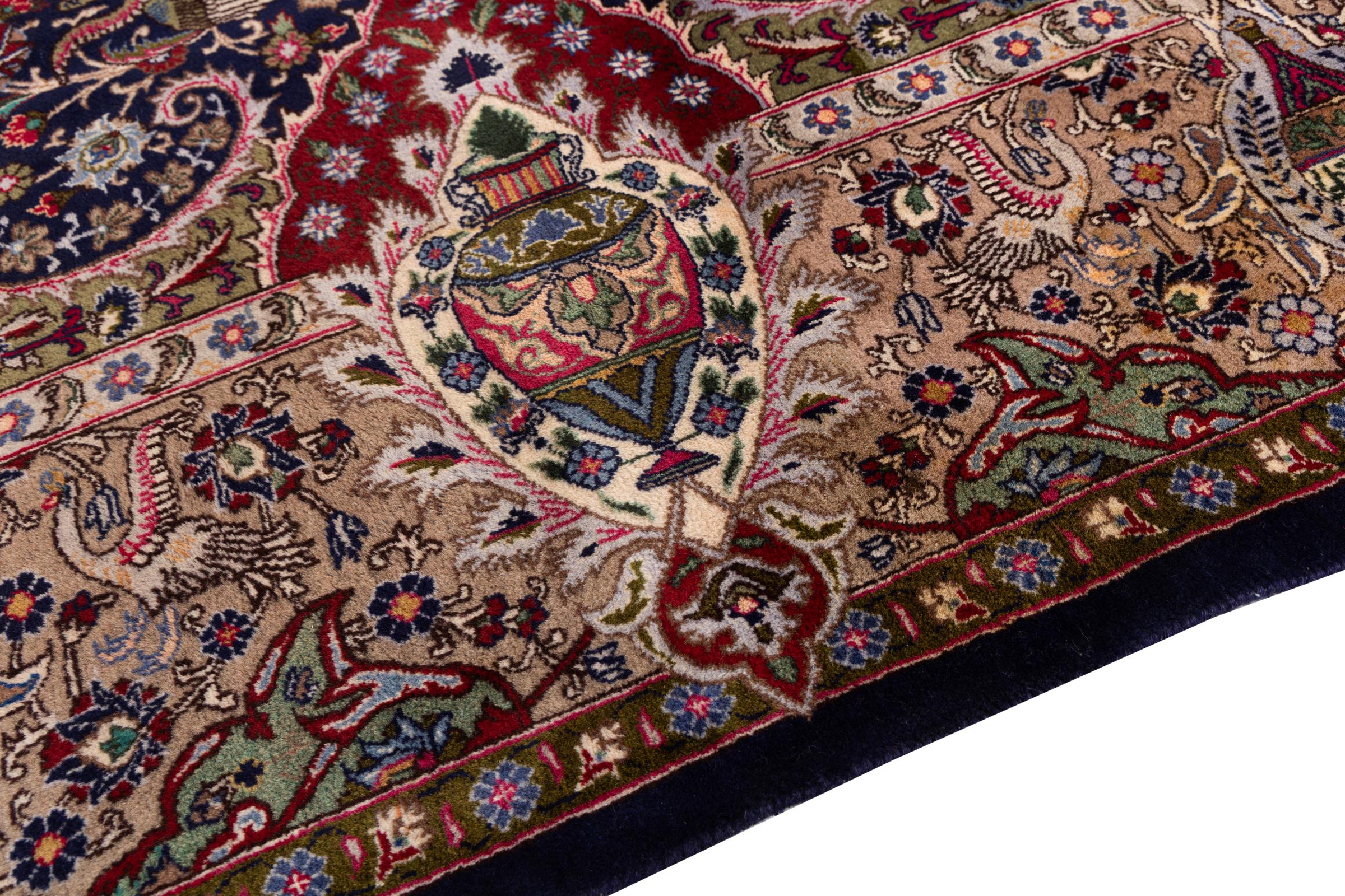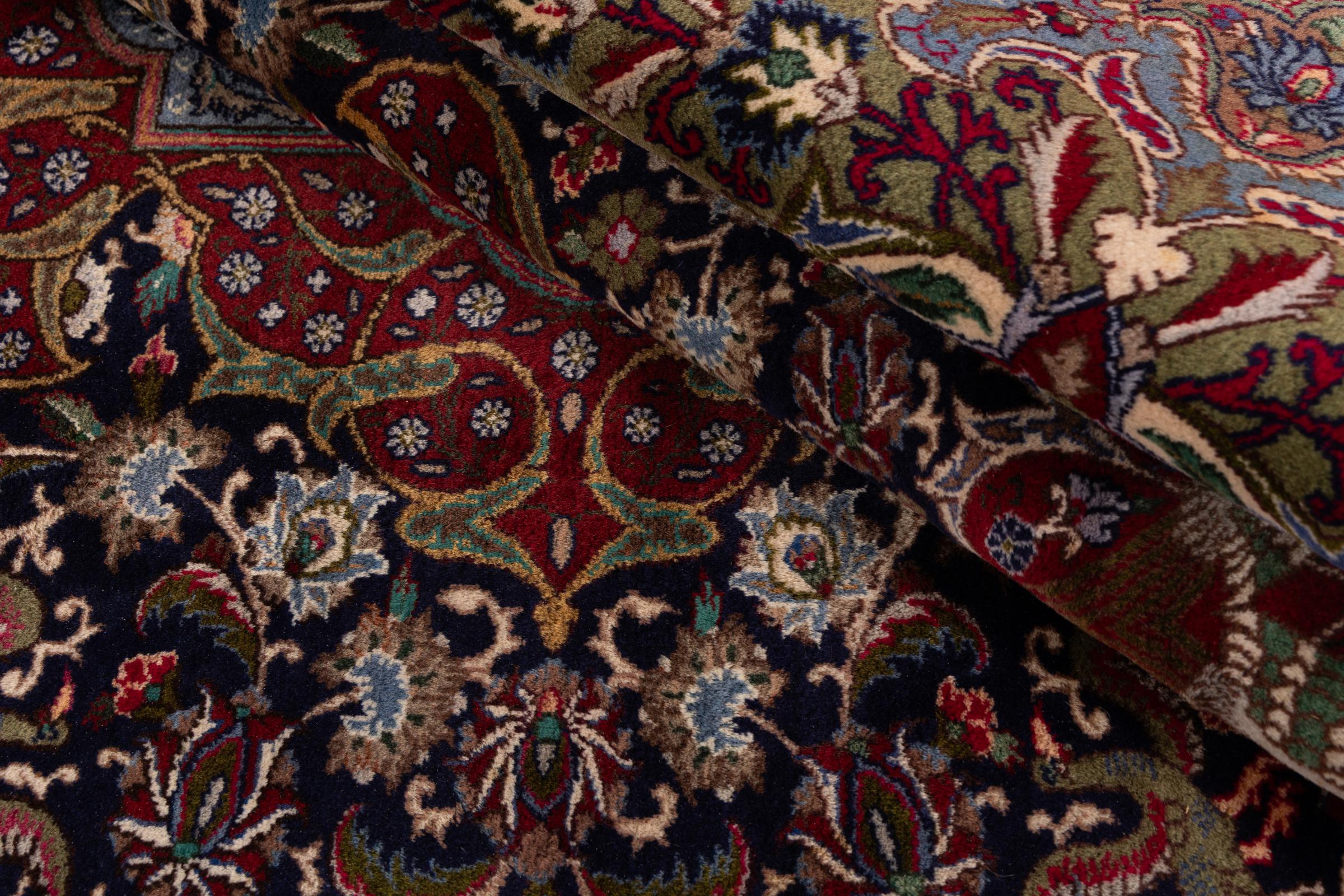 この手編みのカシミアは本物の技術の証です。細部までこだわった手編み。最も美しいバージョンのペルシャ絨毯。イラン北東部のカシュマル市で高品質のウールを手編みして作られました。カシュマル絨毯の中央にはメダリオンが入っていることがよくあります。ペルシャ絨毯としてはやや大胆な色の組み合わせが印象的ですが、再び非常にモダンになっています。