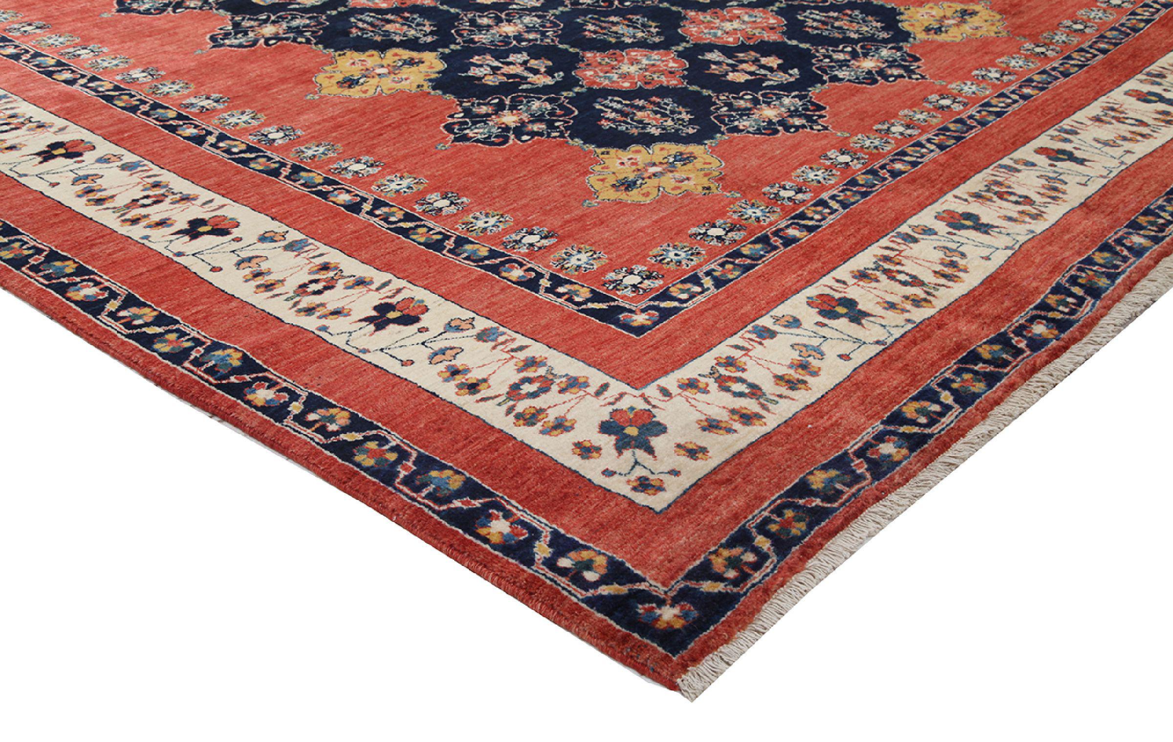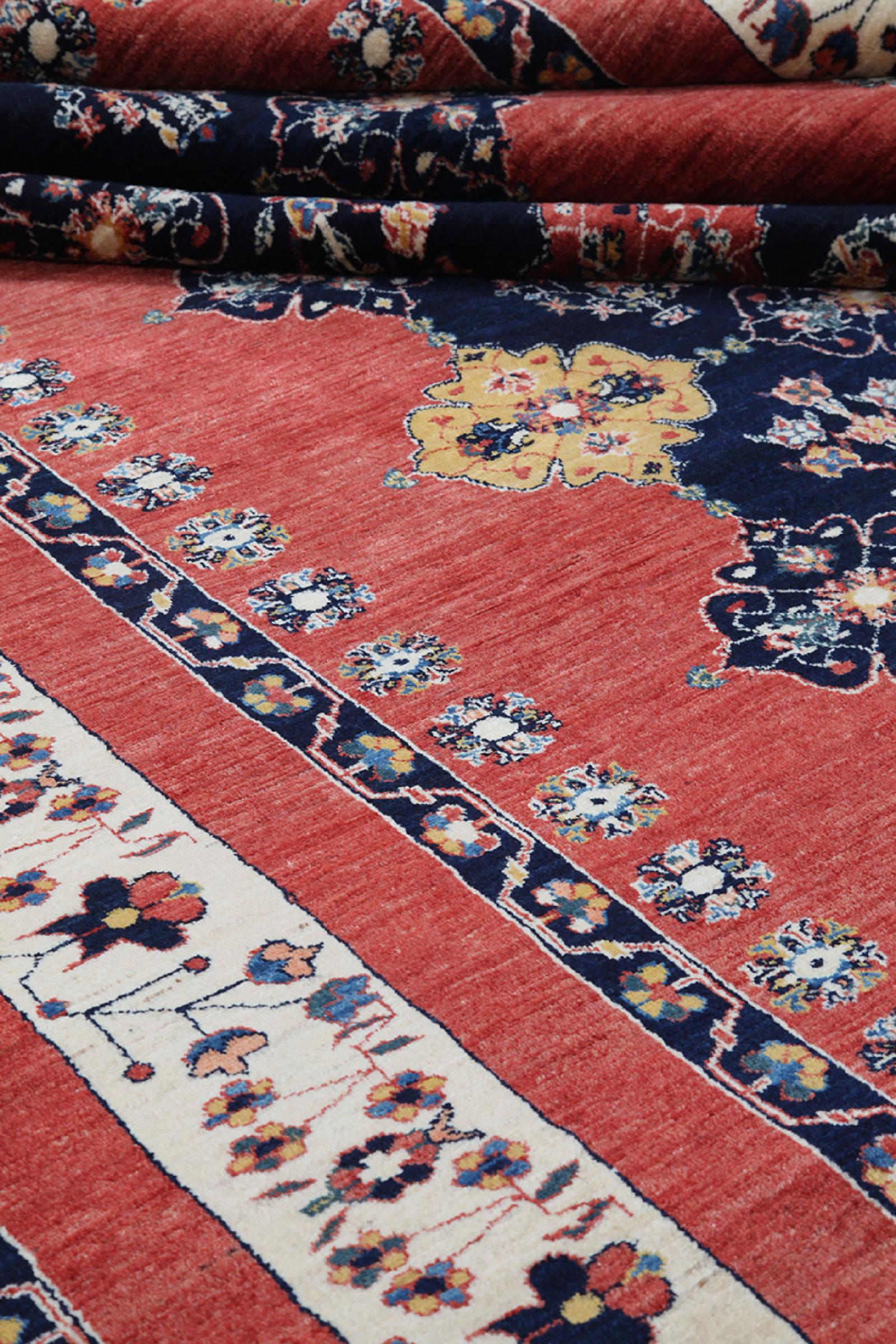 このカーペットは、最高品質の手紡ぎ羊毛を使用しています。特にイラン(旧ペルシャ)、アフガニスタン、パキスタンでは、実際にカーペットの結び目が始まる前に、今でも手で羊毛を紡いでいます。ウールは何世紀にもわたって、自然で非常に丈夫な素材であることを証明してきました。中でも、防汚性、保温性があります。同時に、ウールは他の素材とは比べ物にならないほど柔らかく、自然な光沢があります。