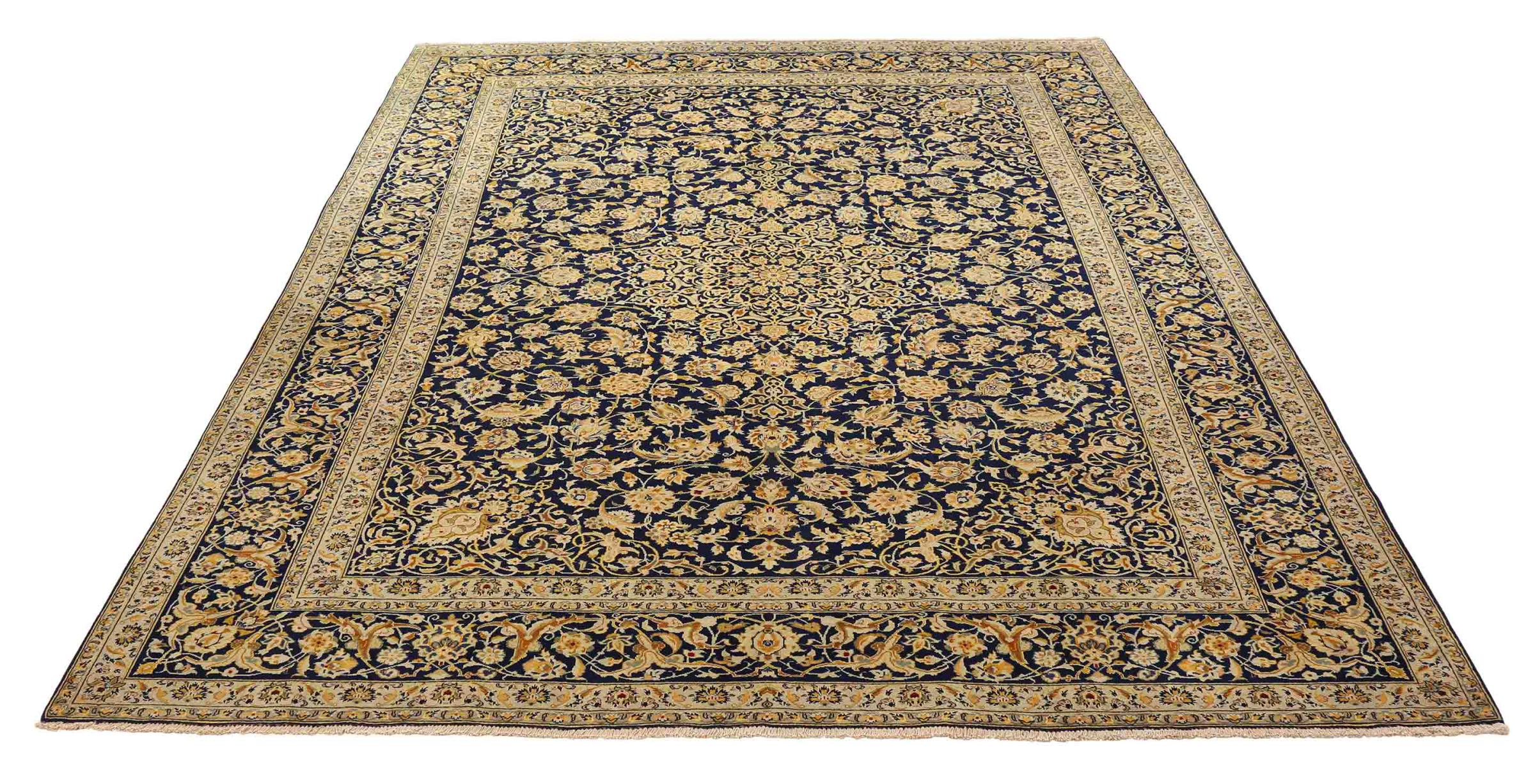カシャーン (ケシャン) のこのカーペットは、非常に伝統的で典型的なペルシャのデザインで、美しい装飾が施されています。 カシャンラグは、その非常にエレガントなデザインで非常に人気があります。 これらの絨毯は、古代シルクロードの都市カシャーンで生まれました。 このカーペットは高級羊毛から手作業で編まれており、ご自宅の中で唯一無二のハイライトとなるでしょう。