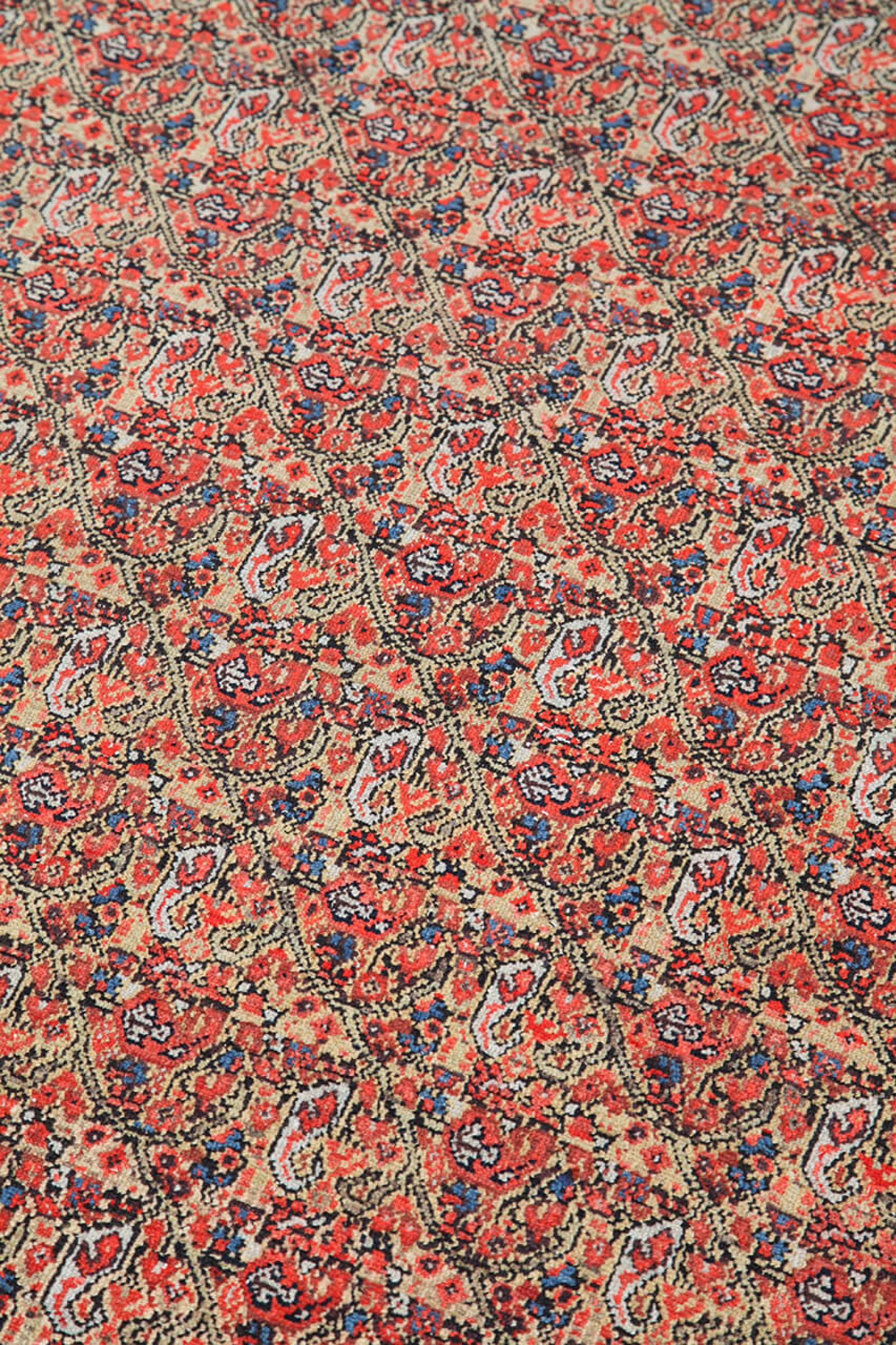 カーペットID 309989002412231 サイズ 194x126 cm 厚さ: およそ 12 mm 密度: 200 000 - 250 000 / m²平方メートル 生産: 手織り 織り目: 手紡ぎウール 整径: ウール、羊毛 状態・保存 完璧 原産地: イラン 年代: アンティーク80年以上 重さ: およそ 9 kg としても知られている Huseinabad 在庫: ユニーク品 - 在庫 1 点のみ