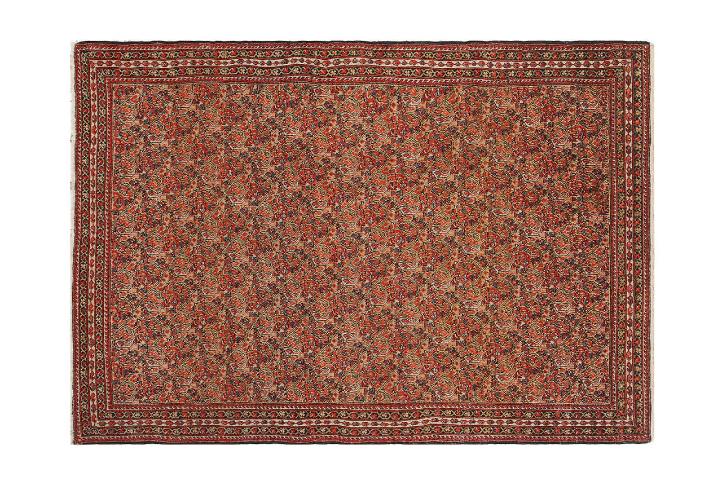 イラン(旧ペルシャ)の村や遊牧民の絨毯に属する絨毯です。この種の絨毯は、昔からの伝統で、小さな町や村で手で結ばれています。遊牧民でさえ、今でもペルシャ絨毯を野外で結びます。絨毯は柄がなく、頭から完全に結びます。古典的な装飾品が特徴で、直線的で幾何学的なパターンで配置されています。 文化的に伝統的な起源を持つこのカーペットは、古代ペルシャを体現するユニークな個性を持っています。