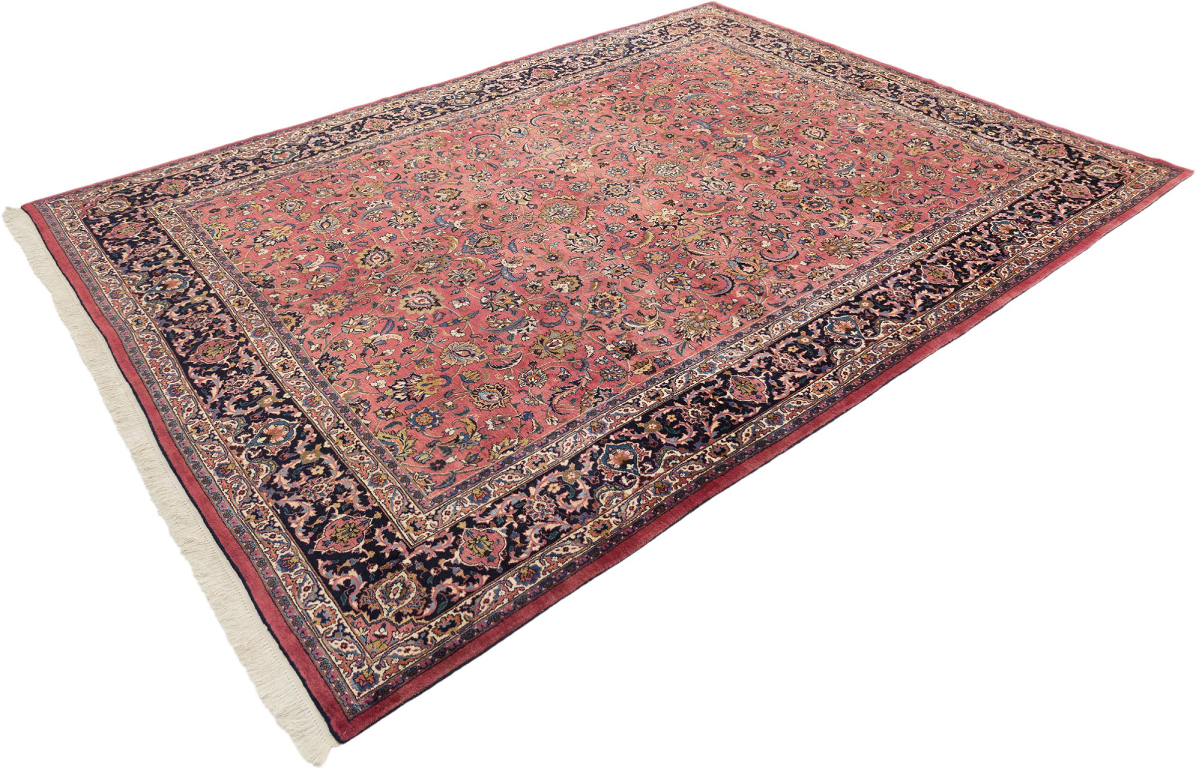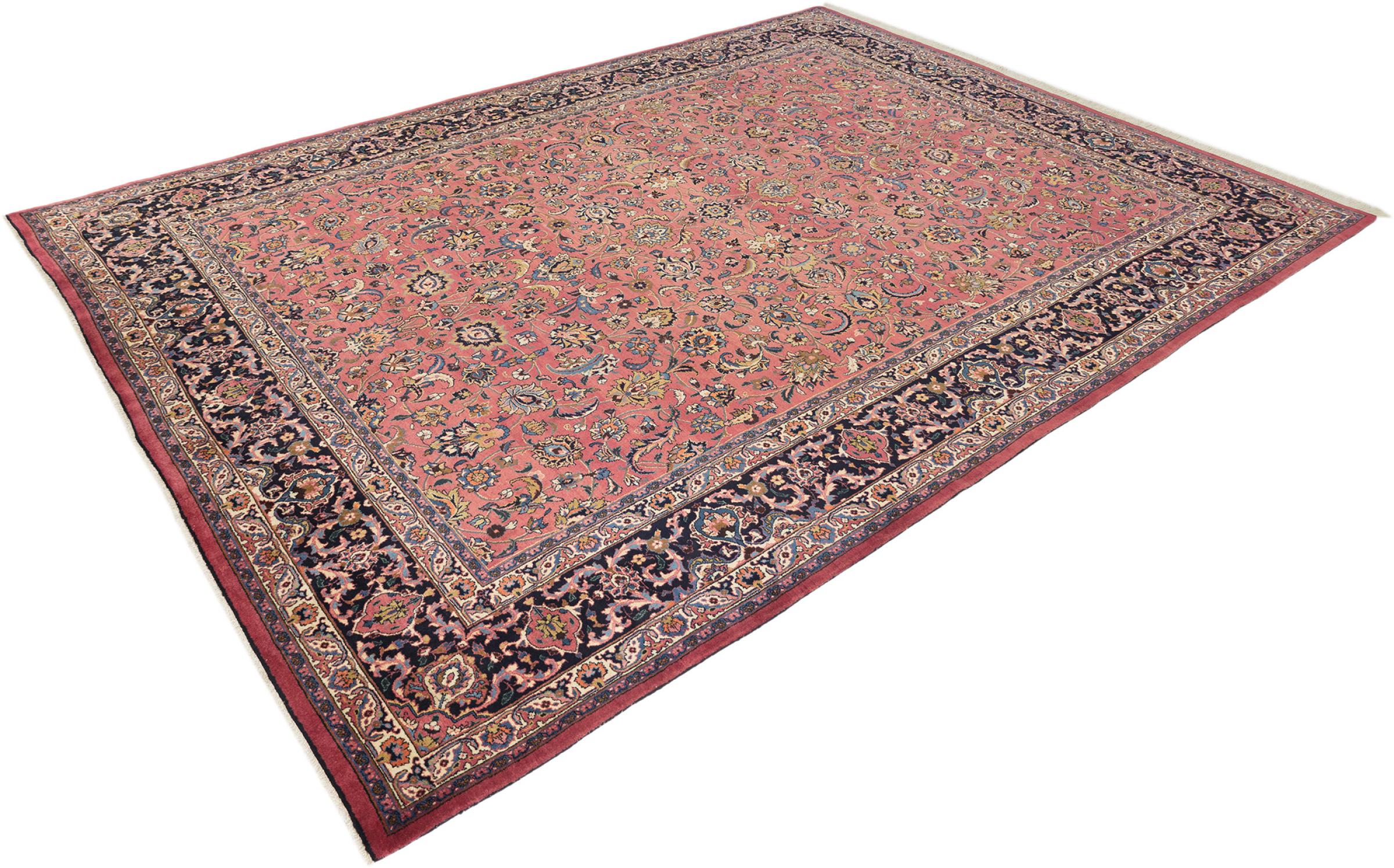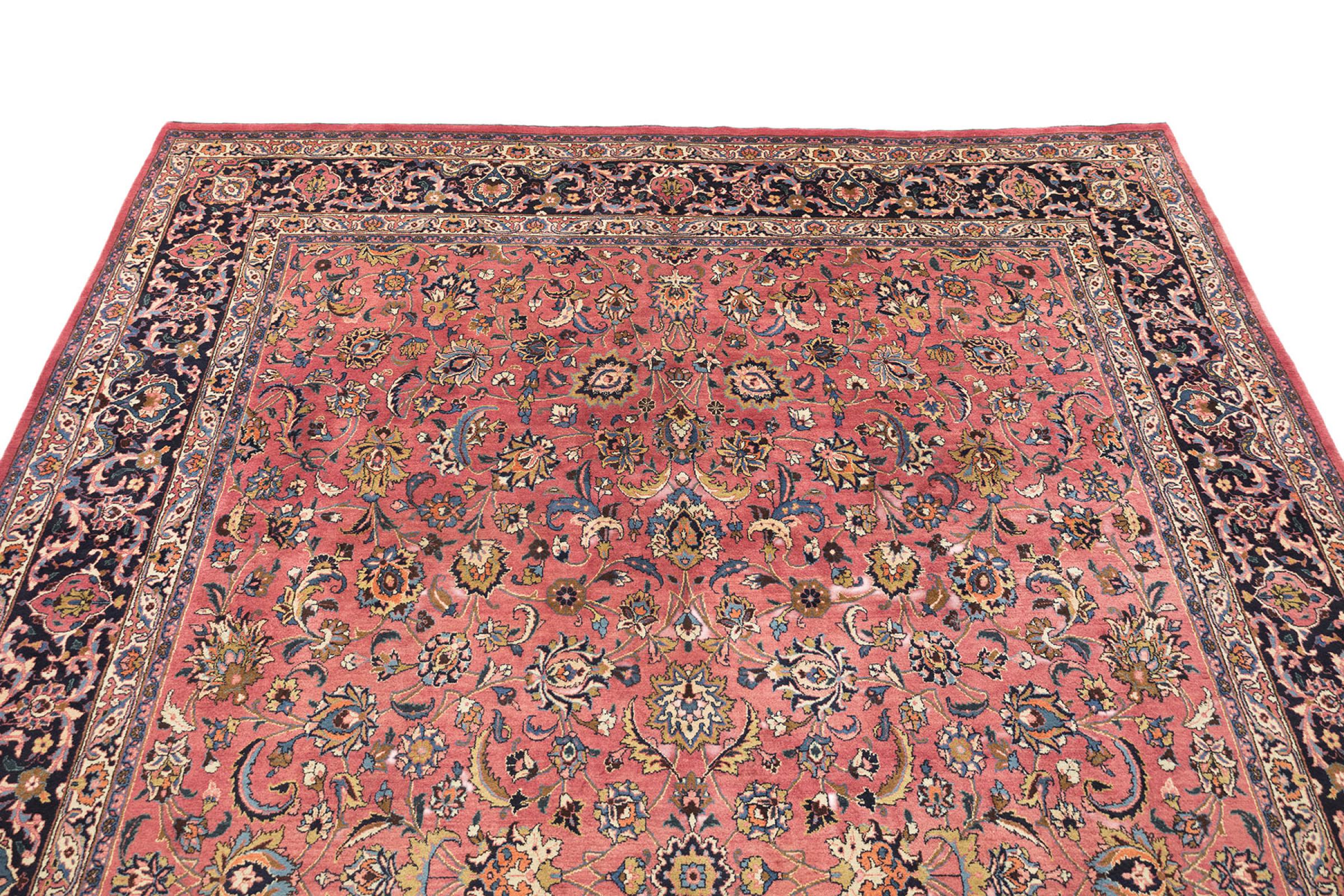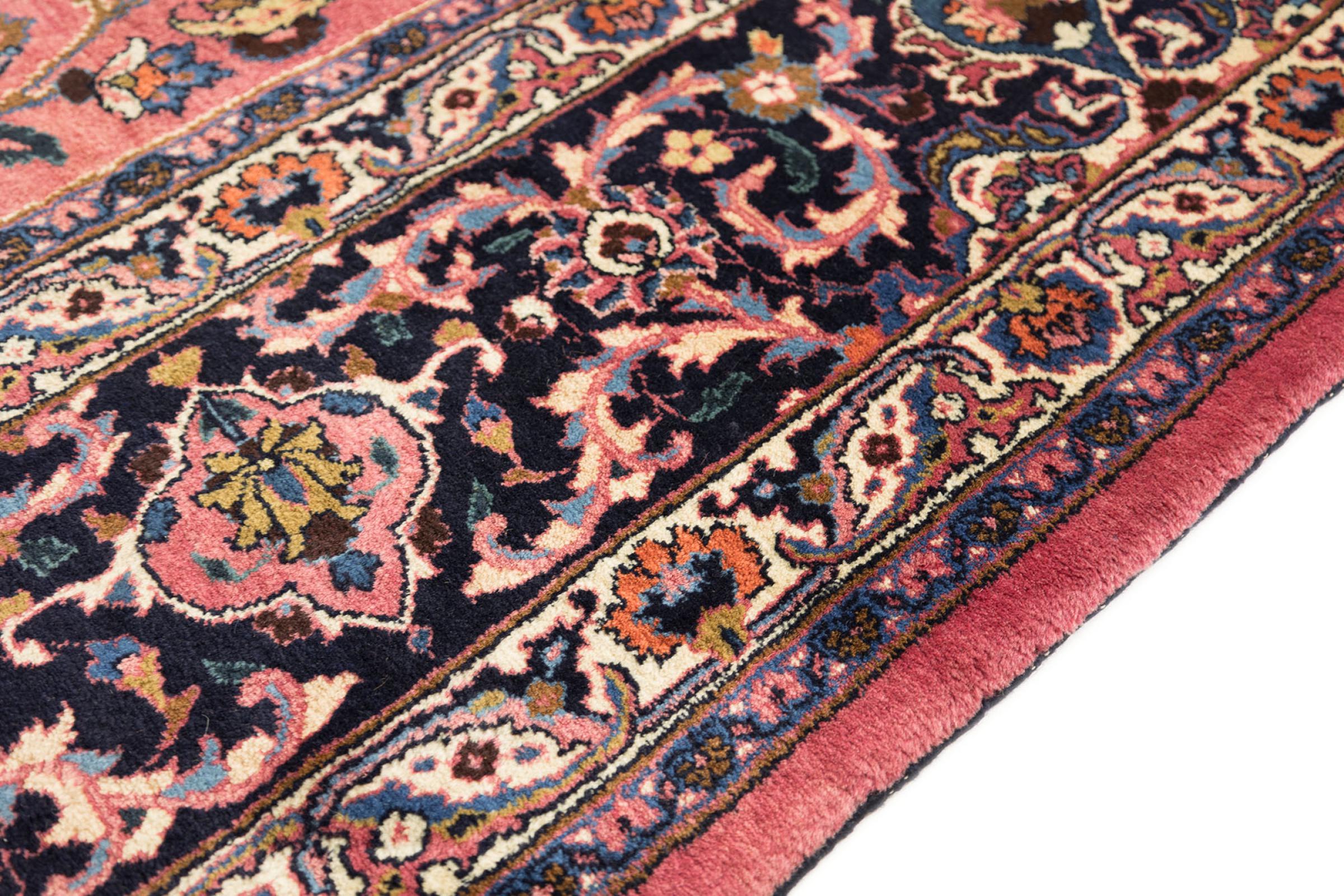 イラン最大の都市の 1 つであるマシュハドで作られたこのカーペットは、純粋な天然ウールから手編みで作られています。 毎年何百万人もの人々がこのペルシャの聖地を巡礼します。 マシュハドの絨毯は、その珍しいサイズと非常に高品質のウールで知られています。