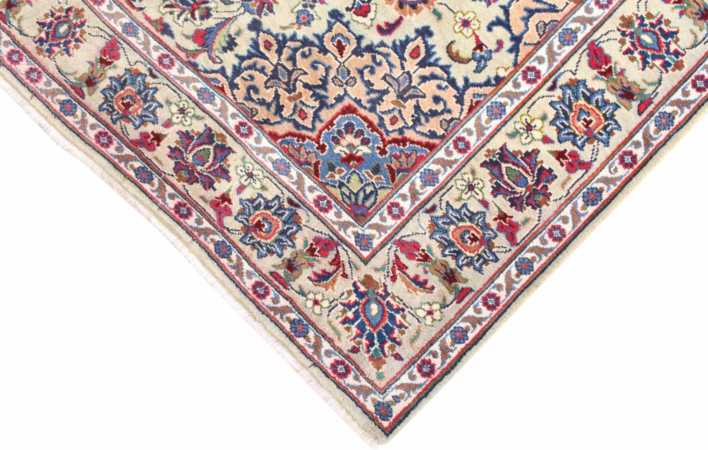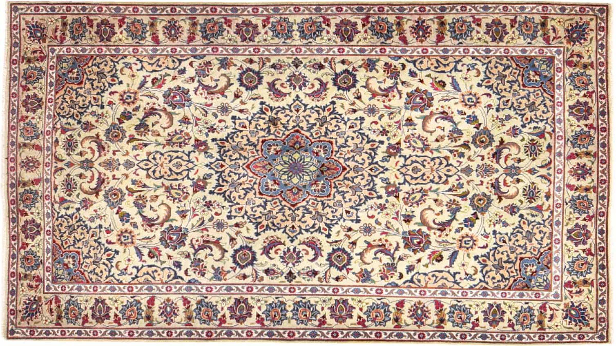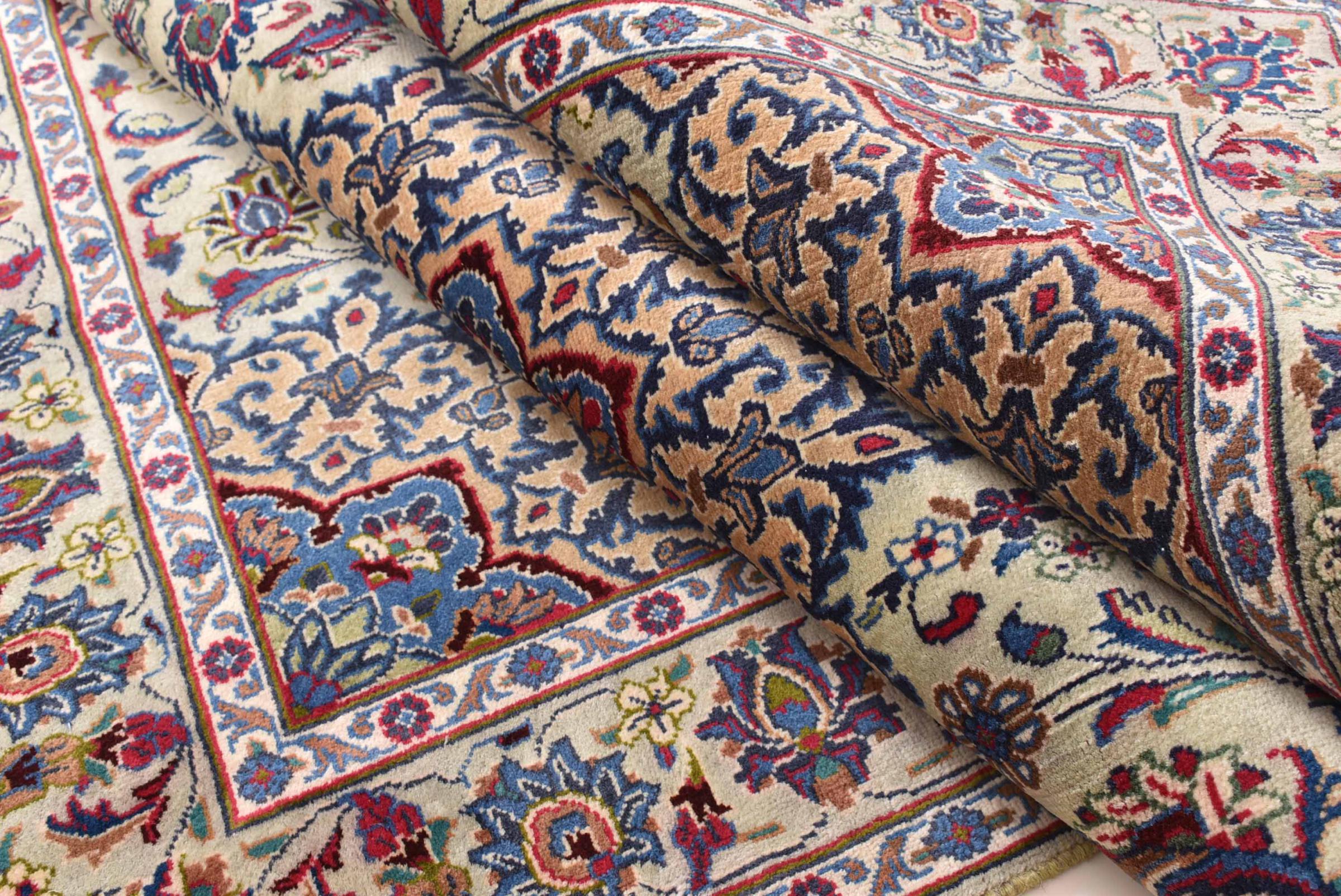 イラン最大の都市の 1 つであるマシュハドで作られたこのカーペットは、純粋な天然ウールから手編みで作られています。 毎年何百万人もの人々がこのペルシャの聖地を巡礼します。 マシュハドの絨毯は、その珍しいサイズと非常に高品質のウールで知られています。