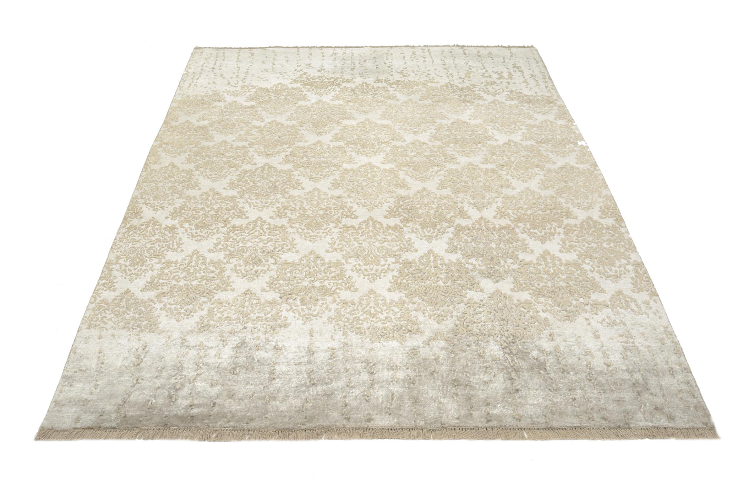 このサドラは、何か月もかけて手で編まれた、独自のクラスのデザイナー カーペットです。高品質の素材と非常にモダンなデザインが組み合わされています。カーペットには何も望まれるものはありません。東洋の伝統的な結び方技術を使って手作りされているため、大きな負担がかかっても何十年も長持ちします。デザイナーによってスカンジナビアスタイルでデザインされており、何年経っても絶対的なハイライトとして残っています。特に、柔らかい羊毛と光沢のある竹シルクまたはビスコースの組み合わせは、ユニークな体験を生み出します。