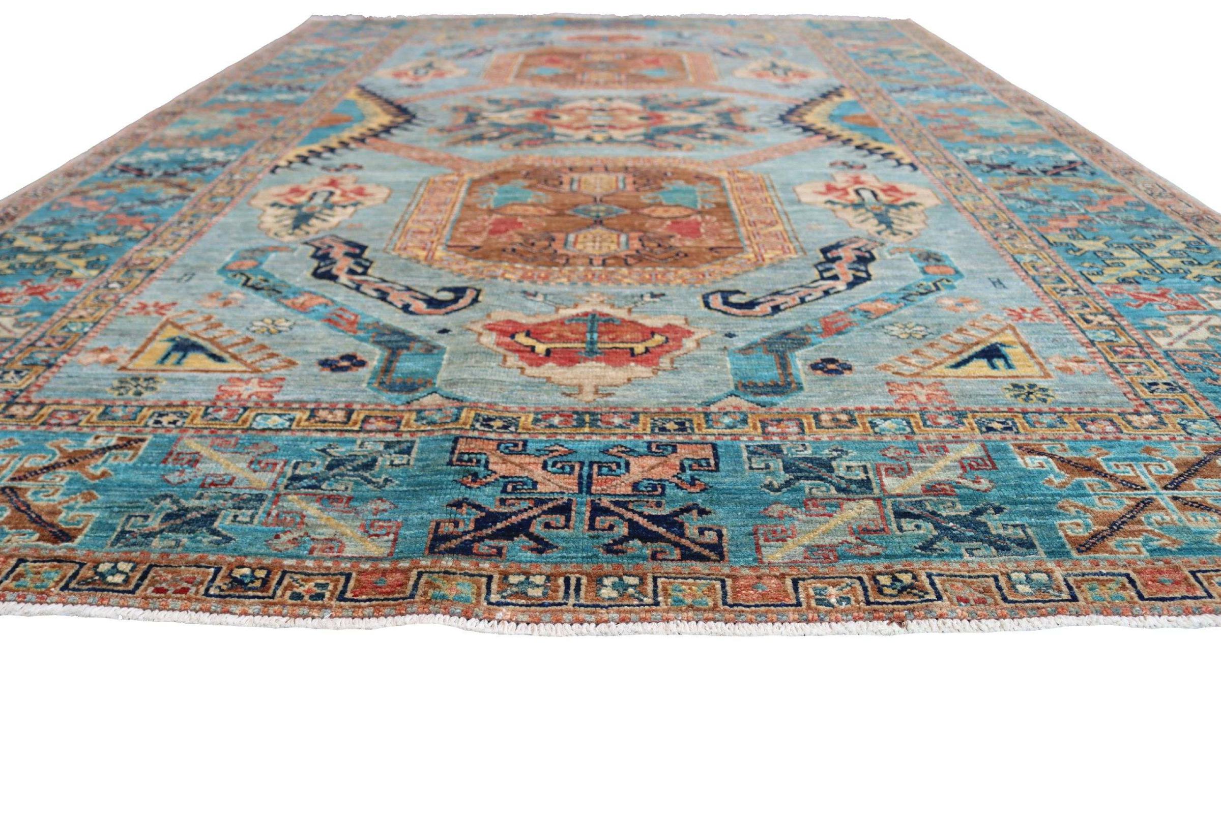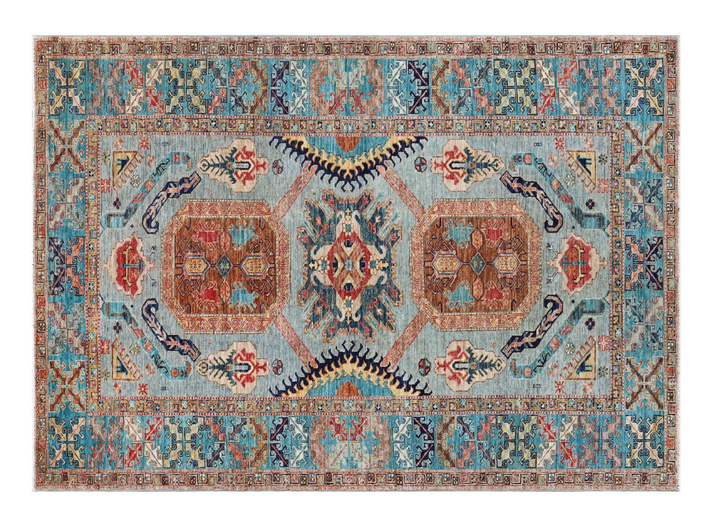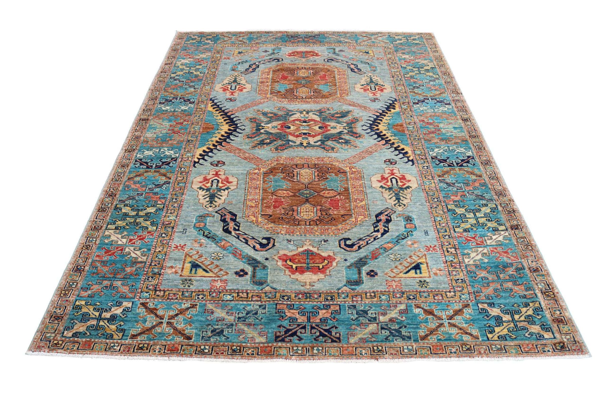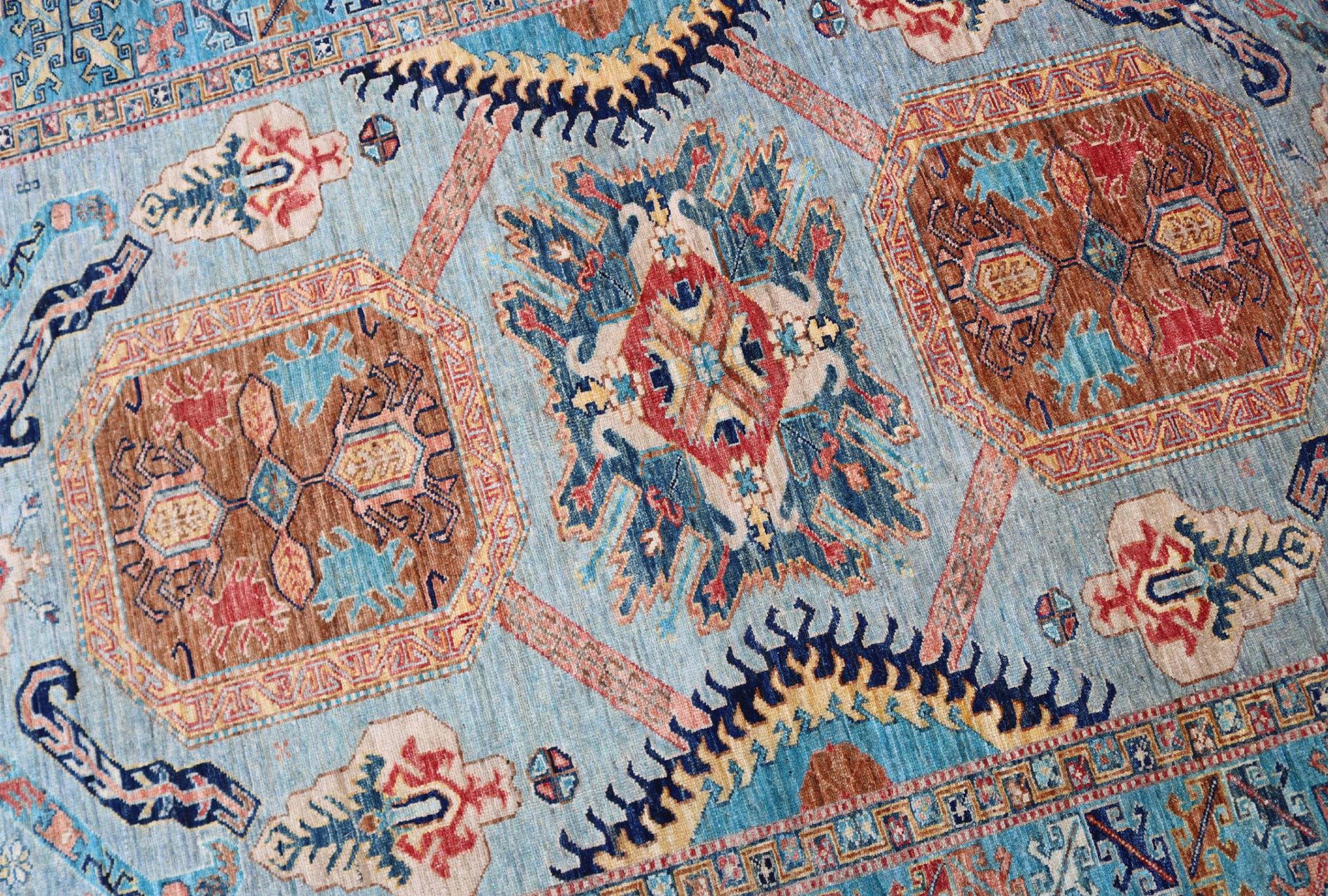 カザフスタンの敷物は、ユニークな幾何学模様、バランスの取れた色、卓越した職人技で知られる、耐久性に優れた鮮やかなウールの敷物です。 あなたの空間に魅力的で文化豊かな雰囲気を作り出します。 コーカサス原産で最も古い種類のカーペットの 1 つですが、現在では主にアフガニスタンとパキスタンのカザフ人によって作られています。 アンティークのカザフスタンの敷物はコレクターにとって非常に価値があります。
