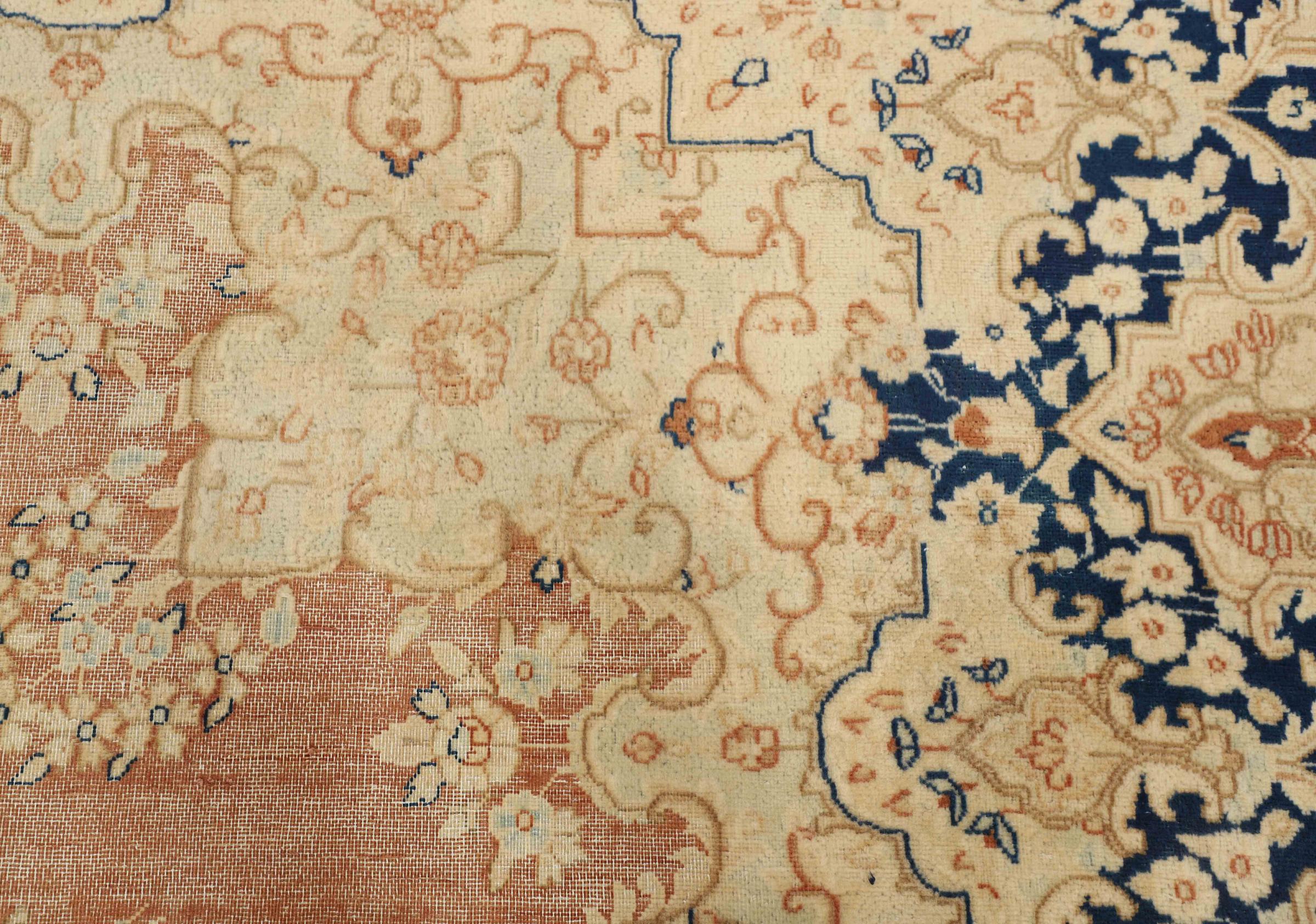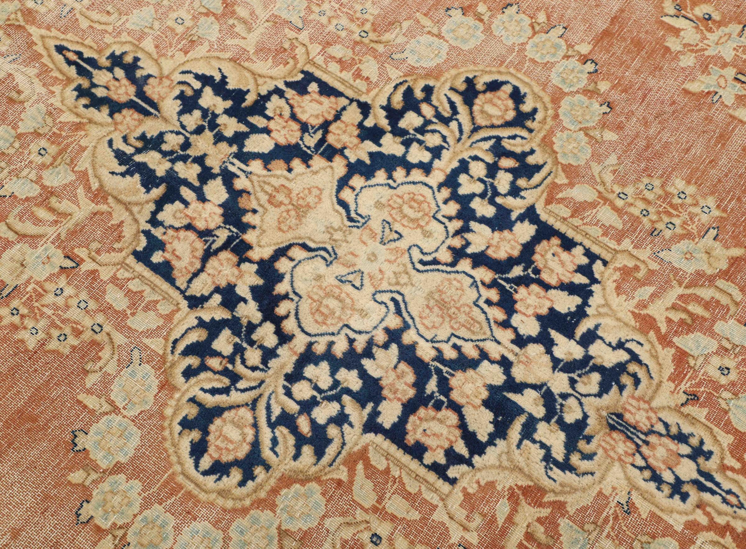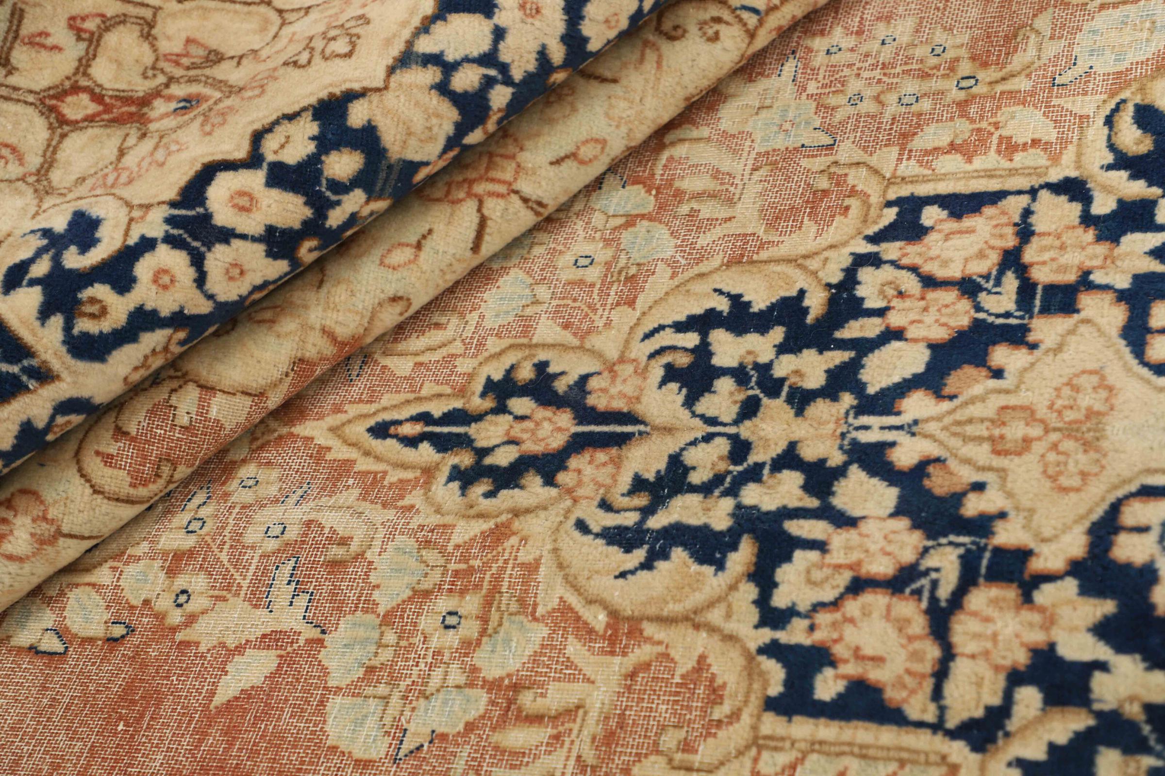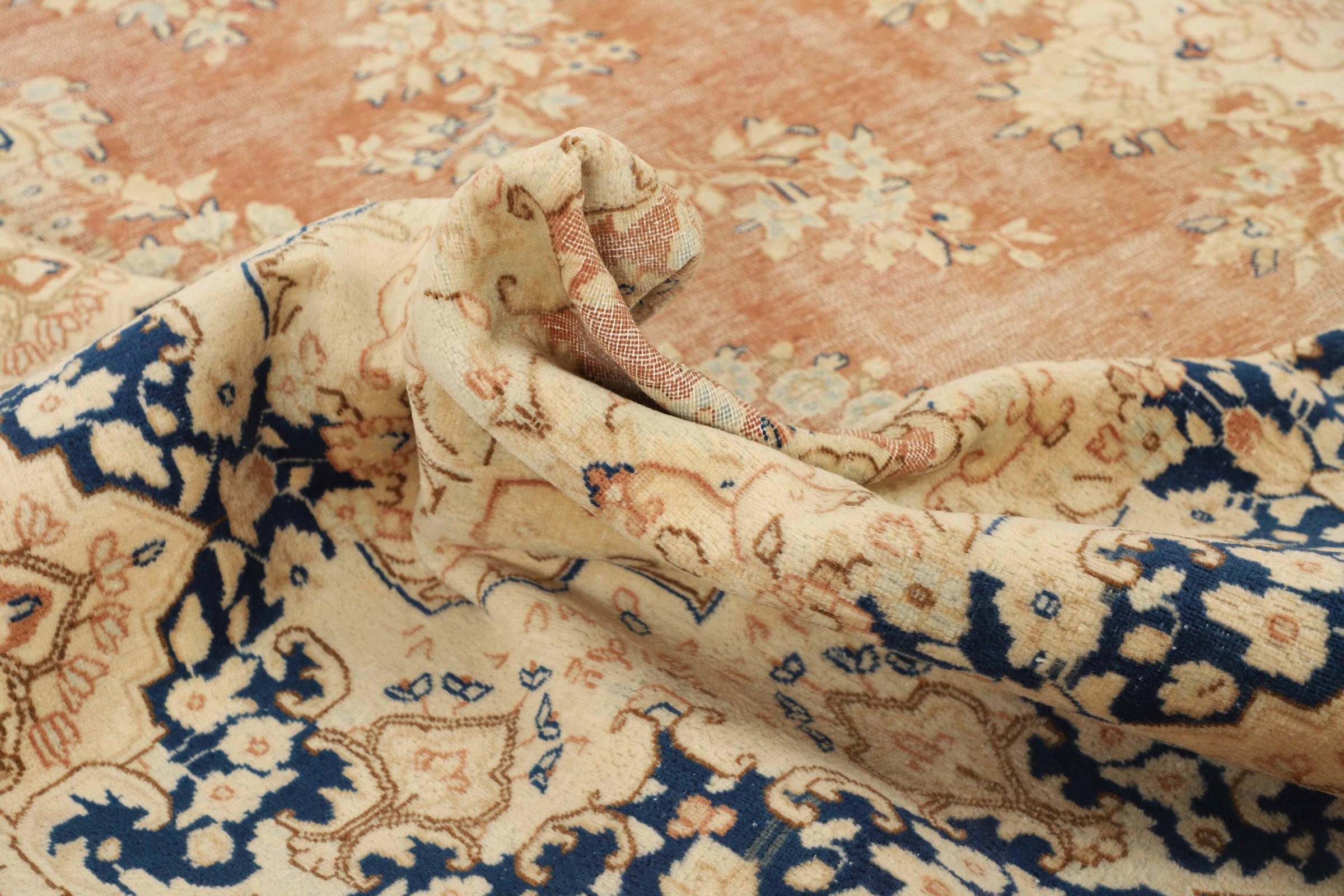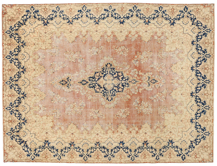 このようなヴィンテージのペルシャ絨毯は、間違いなくヴィンテージ絨毯の中でもハイライトです。 このカーペットは、世界で最も高く評価されている織物の産地の 1 つであるペルシャの都市ケルマーンで生産されています。 花の装飾、中央のメダリオン、そして非常に高品質のおかげで、ケルマーンのペルシャ絨毯は世界中で人気があります。 このヴィンテージ ケルマンもこれらの価値観に基づいています。 羊毛のパイルは平らに整えられ、専門的に再加工されています。 オリジナルのパターンや装飾は意図的に保存されています。 同時に、輪郭の色が変更され、エレガントなヴィンテージの外観が強調されました。