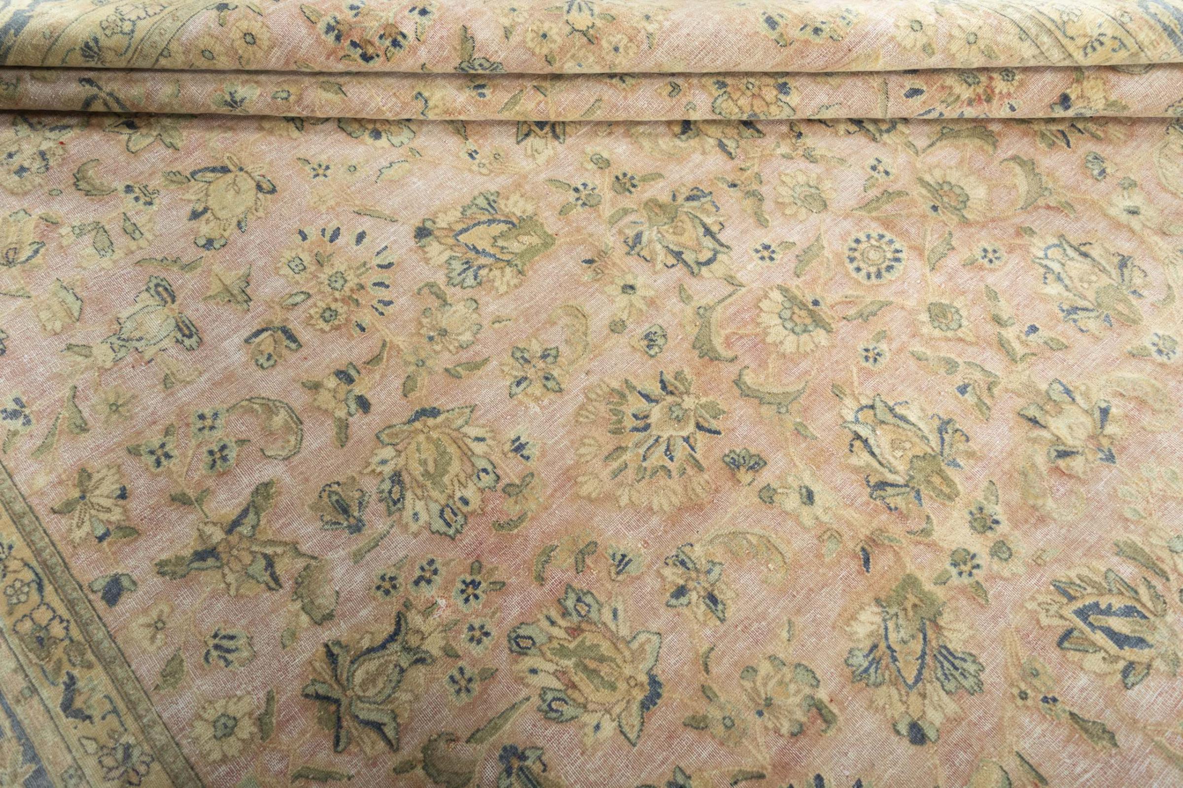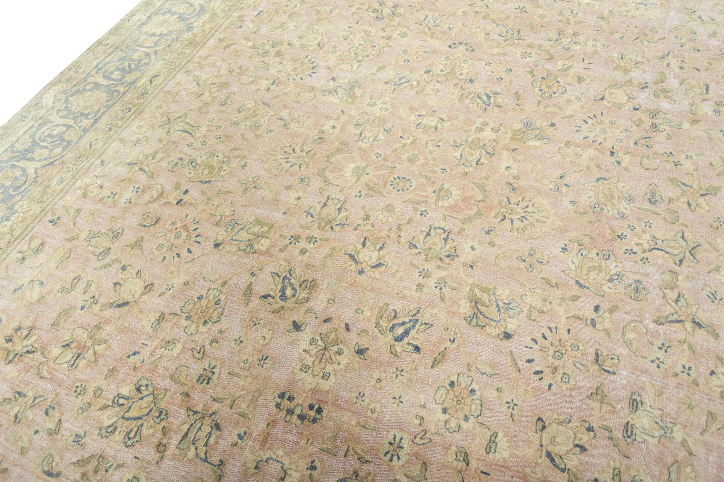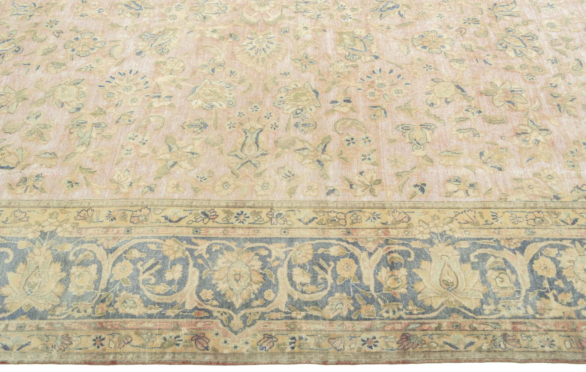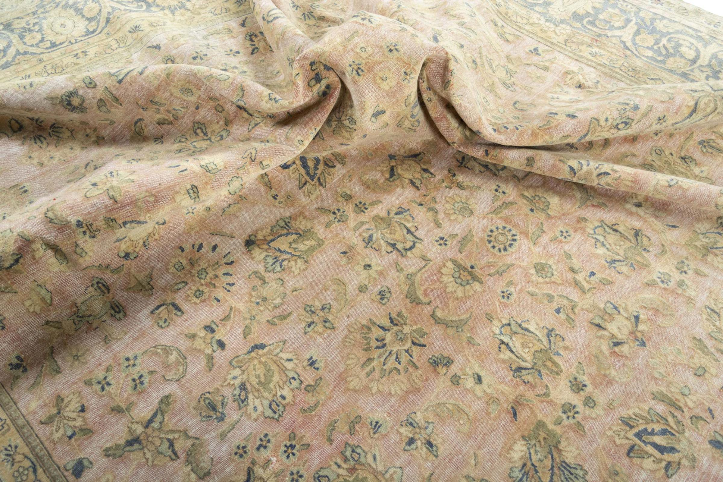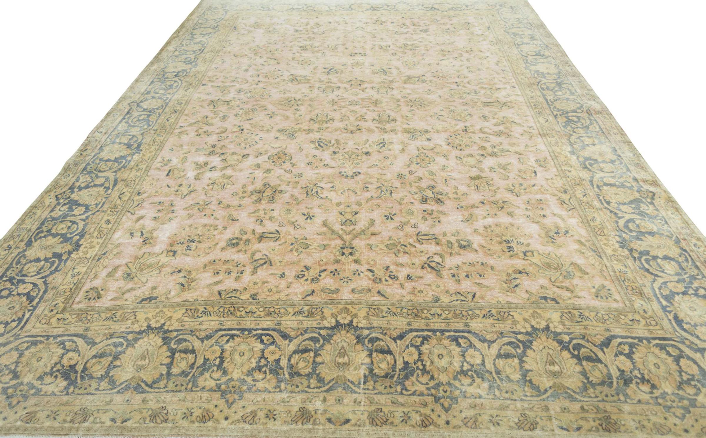 これは少なくとも 20 年以上前に作られた手織りのペルシャ絨毯です。適切なお手入れをすれば、このようなカーペットは何世代にもわたって長持ちします。カーペットは、もともと埋め込まれていた装飾品を完全に染め直すことなく、完全に再着色されました。これにより、非常に高品質のペルシャ絨毯に、ユニークでモダンなヴィンテージの特徴が与えられます。