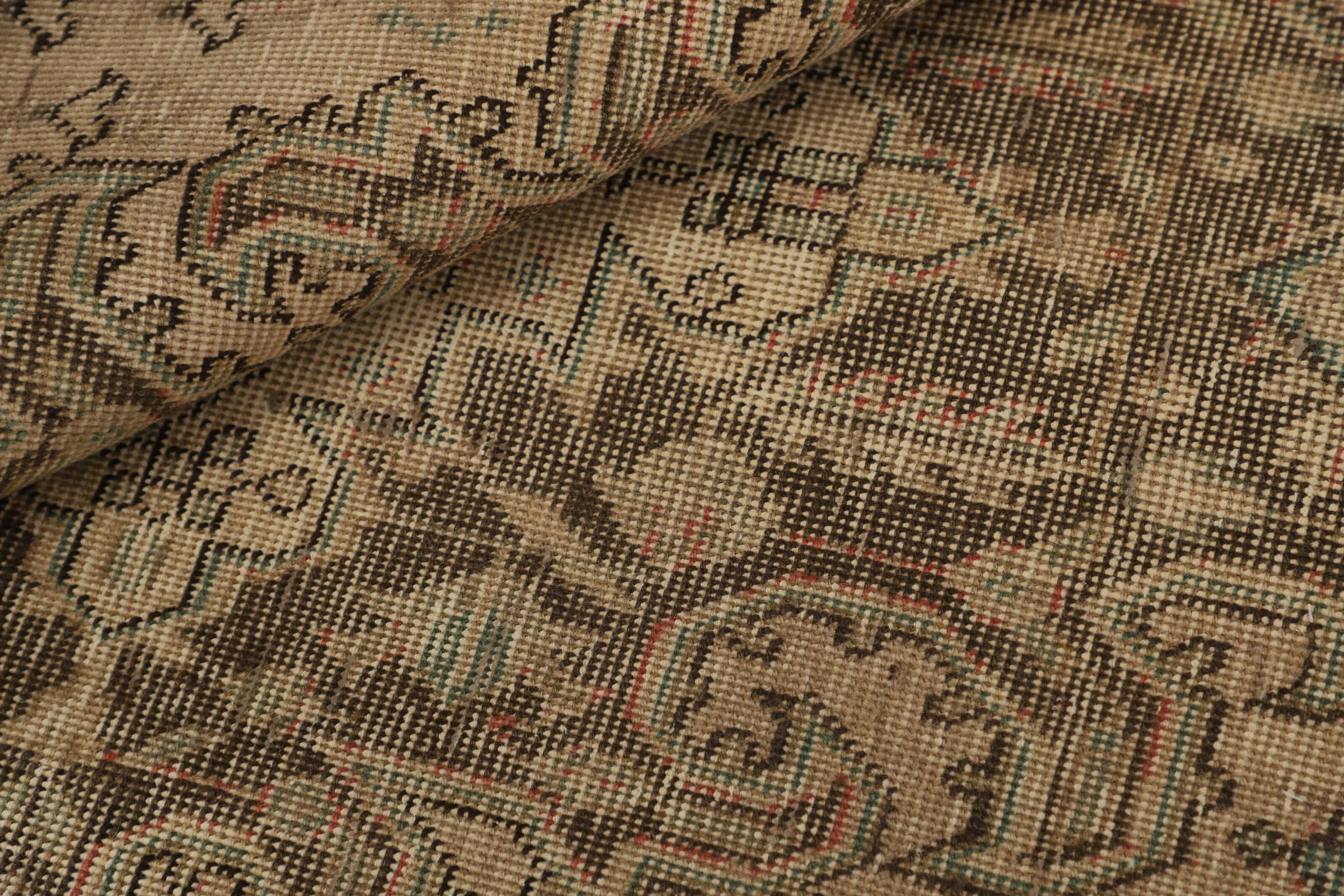 これは少なくとも 20 年以上前に作られた手織りのペルシャ絨毯です。適切なお手入れをすれば、このようなカーペットは何世代にもわたって長持ちします。カーペットは、もともと埋め込まれていた装飾品を完全に染め直すことなく、完全に再着色されました。これにより、非常に高品質のペルシャ絨毯に、ユニークでモダンなヴィンテージの特徴が与えられます。