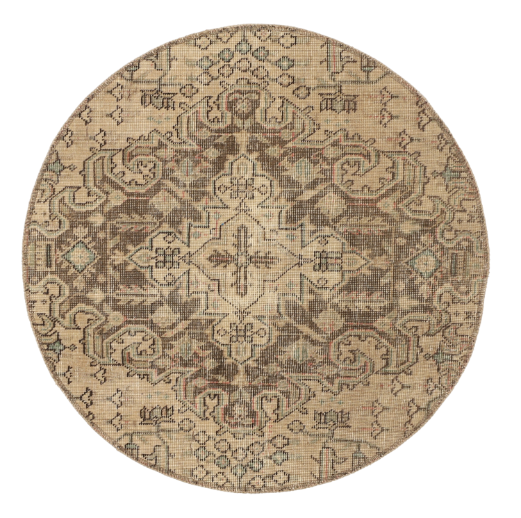 カーペットID 312329003910948 サイズ 101x99 cm 厚さ: およそ 8 mm 密度: 160 000 - 200 000 / m²平方メートル 生産: 手織り 織り目: 手紡ぎウール 整径: コットン 状態・保存 ヴィンテージ - 短毛、芸術的に新しく仕上げられ、現代的に解釈された 原産地: イラン 年代: 20-30年もの 重さ: およそ 3 kg 在庫: ユニーク品 - 在庫 1 点のみ