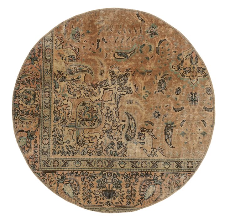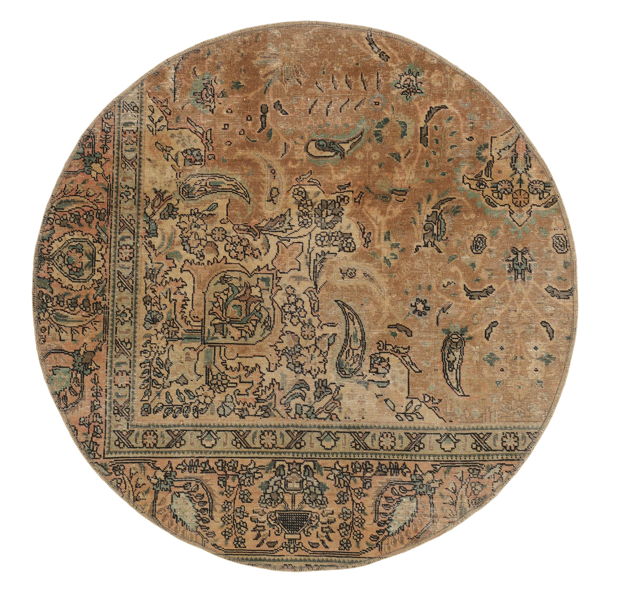 カーペットID 312333004247586 サイズ 151x151 cm 厚さ: およそ 8 mm 密度: 160 000 - 200 000 / m²平方メートル 生産: 手織り 織り目: 手紡ぎウール 整径: コットン 状態・保存 ヴィンテージ - 短毛、芸術的に新しく仕上げられ、現代的に解釈された 原産地: イラン 年代: 20-30年もの 重さ: およそ 8 kg 在庫: ユニーク品 - 在庫 1 点のみ